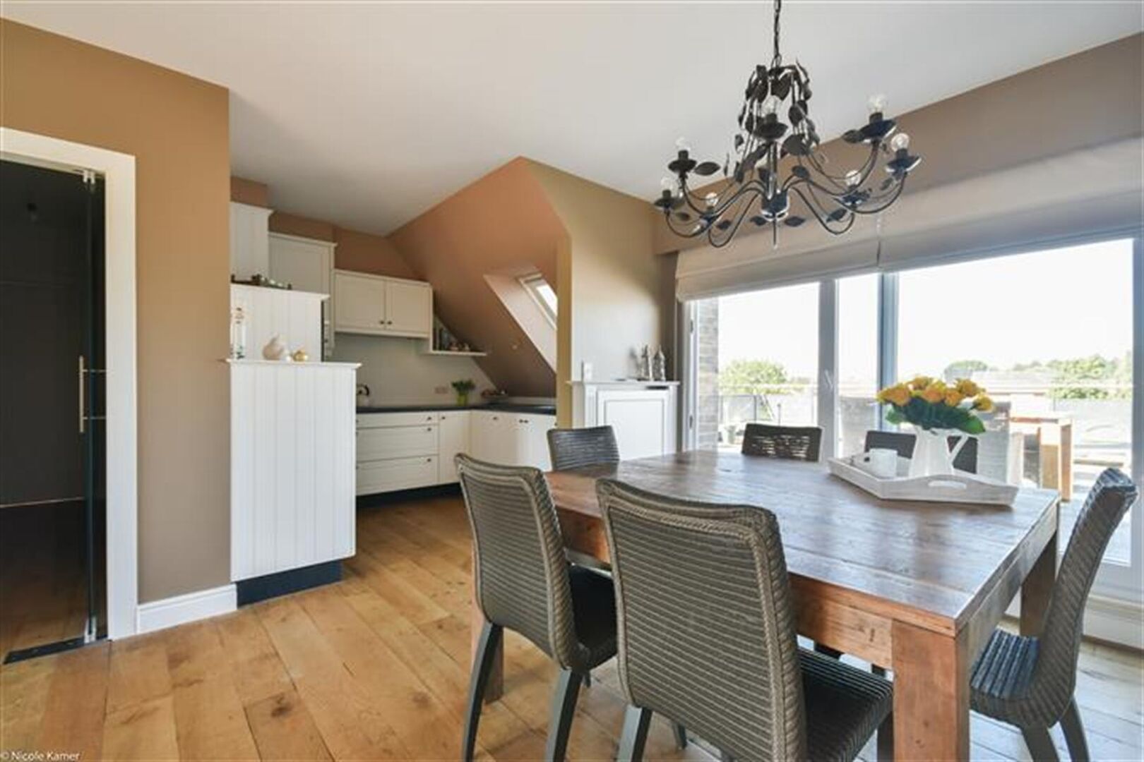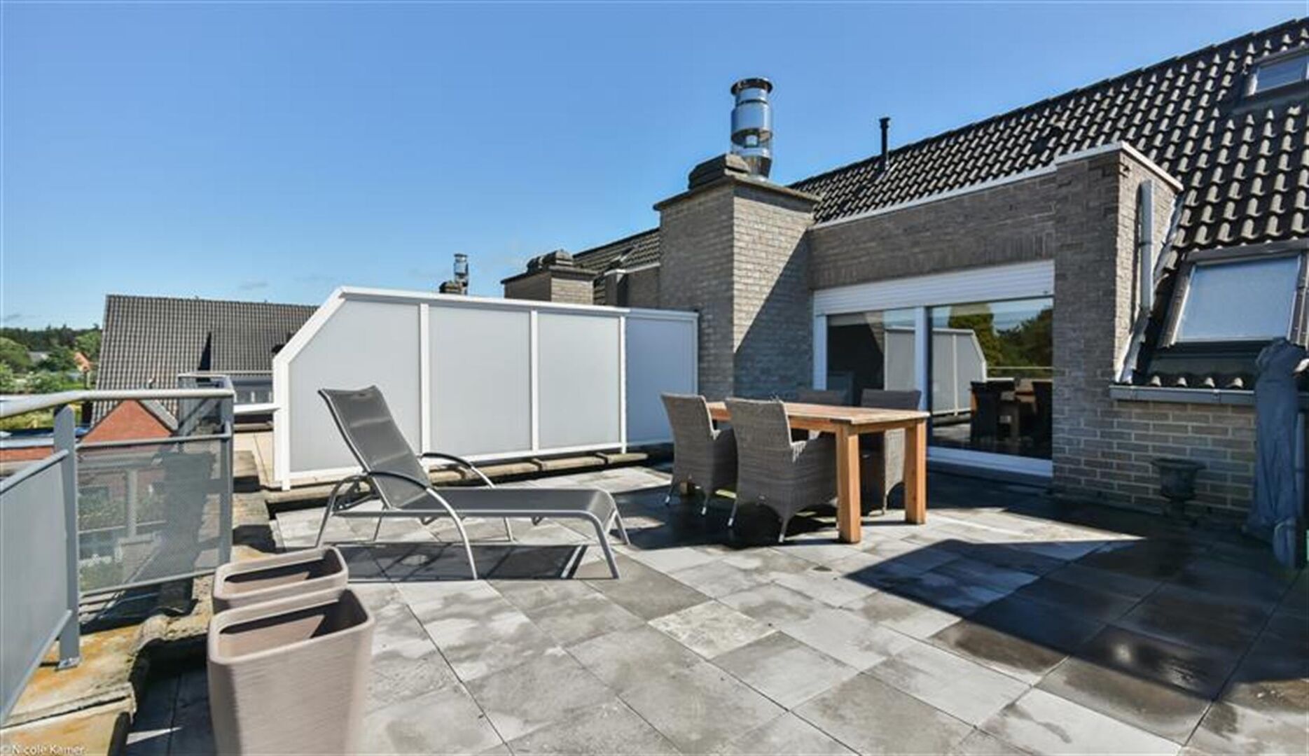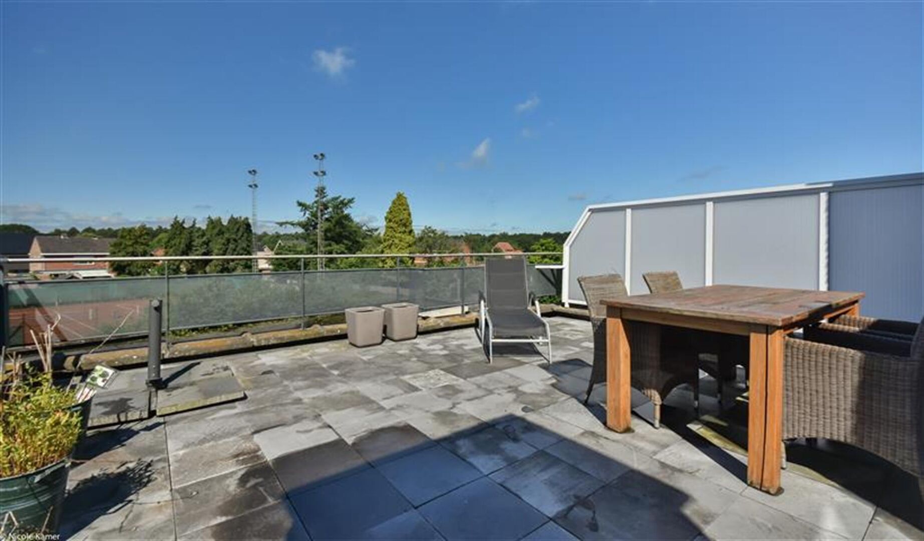 Het grote terras met ideale zonneoriƫntatie is toegankelijk via de leefruimte en hier kan je werkelijk de ganse dag genieten van de zon!