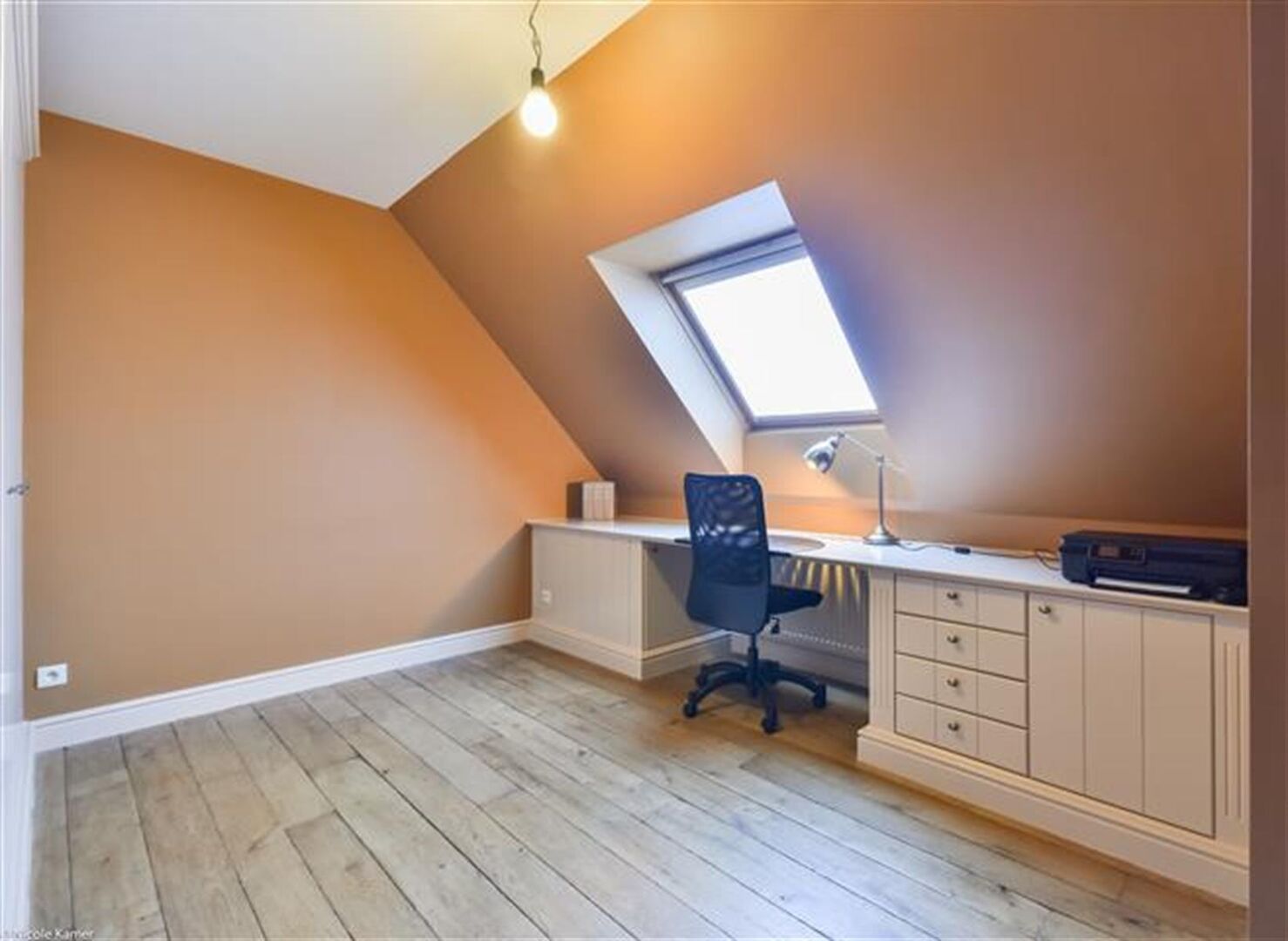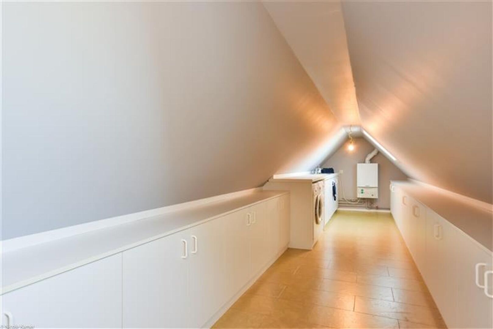 De trap in de leefruimte geeft toegang tot de zolderverdieping. Deze is ingericht als bering/wasplaats en is voorzien van vele ingemaakte kasten.