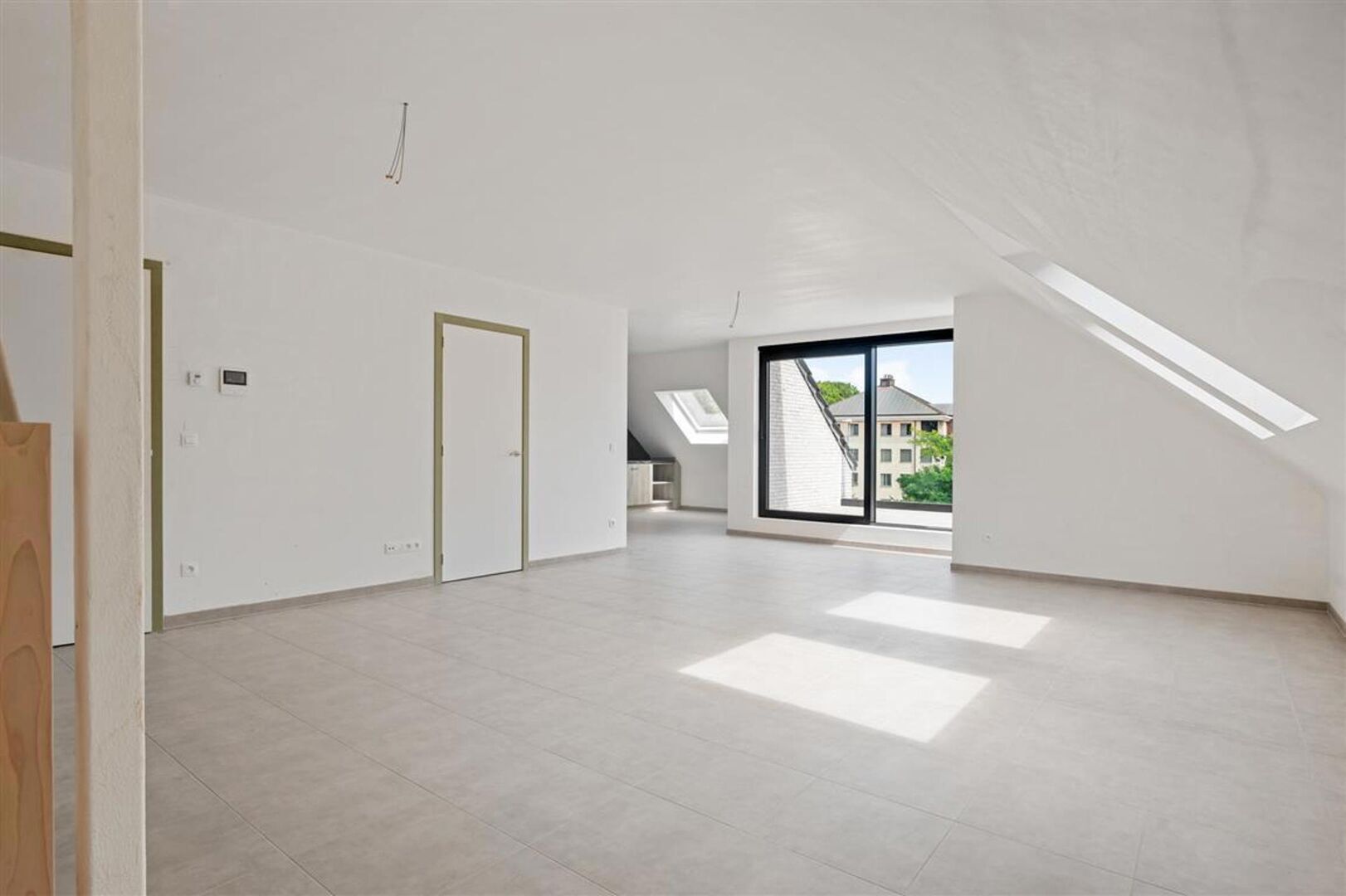 De leefruimte is de blikvanger van dit appartement. Er is uitzonderlijk veel lichtinval en je hebt er toegang tot en uitzicht op het knappe dakterras (15m²).