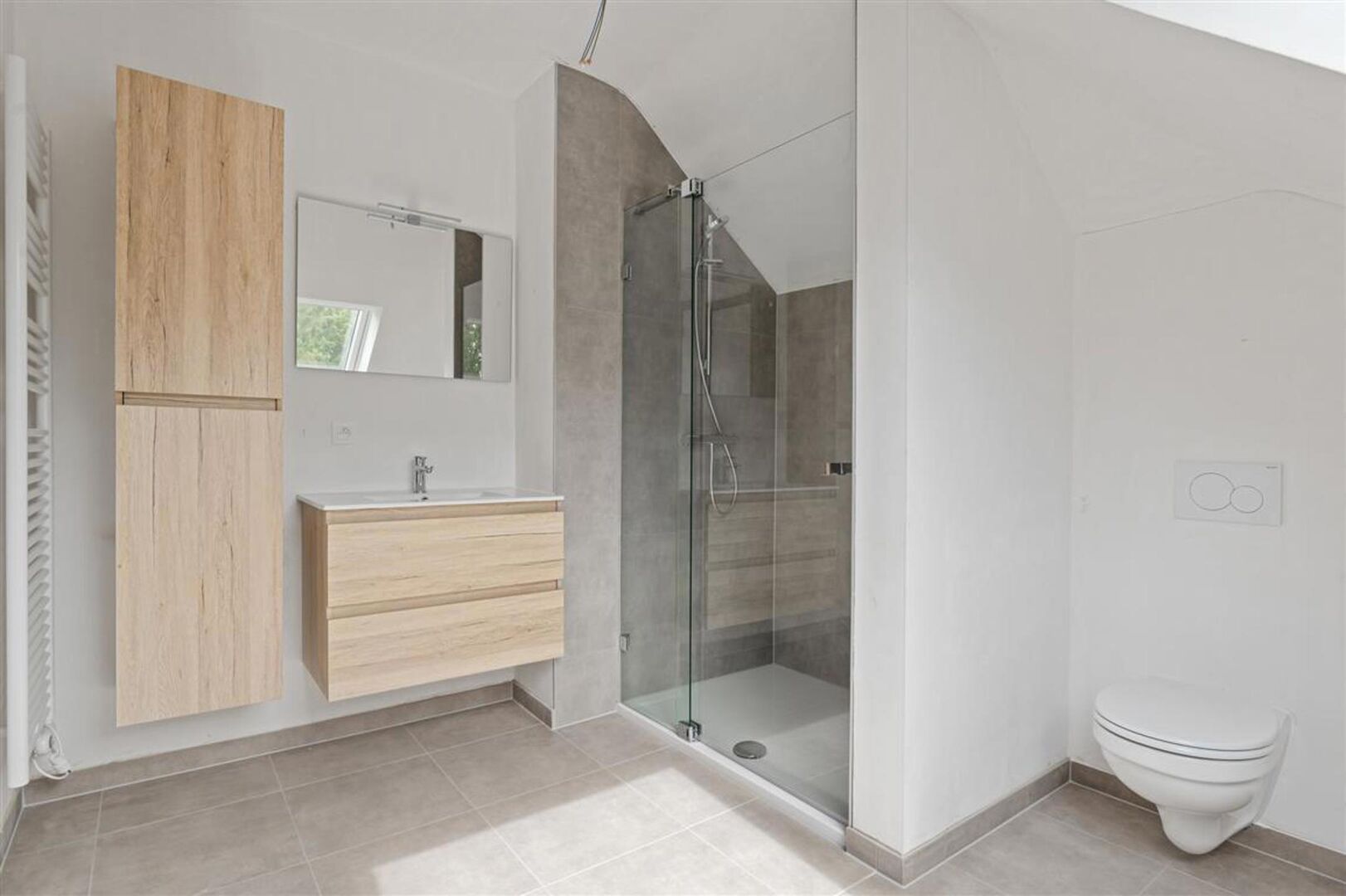 Op de verdieping is er een zeer grote slaapkamer (17m²!), een badkamer met douche en nog een overloop (bureau, extra berging, ...).