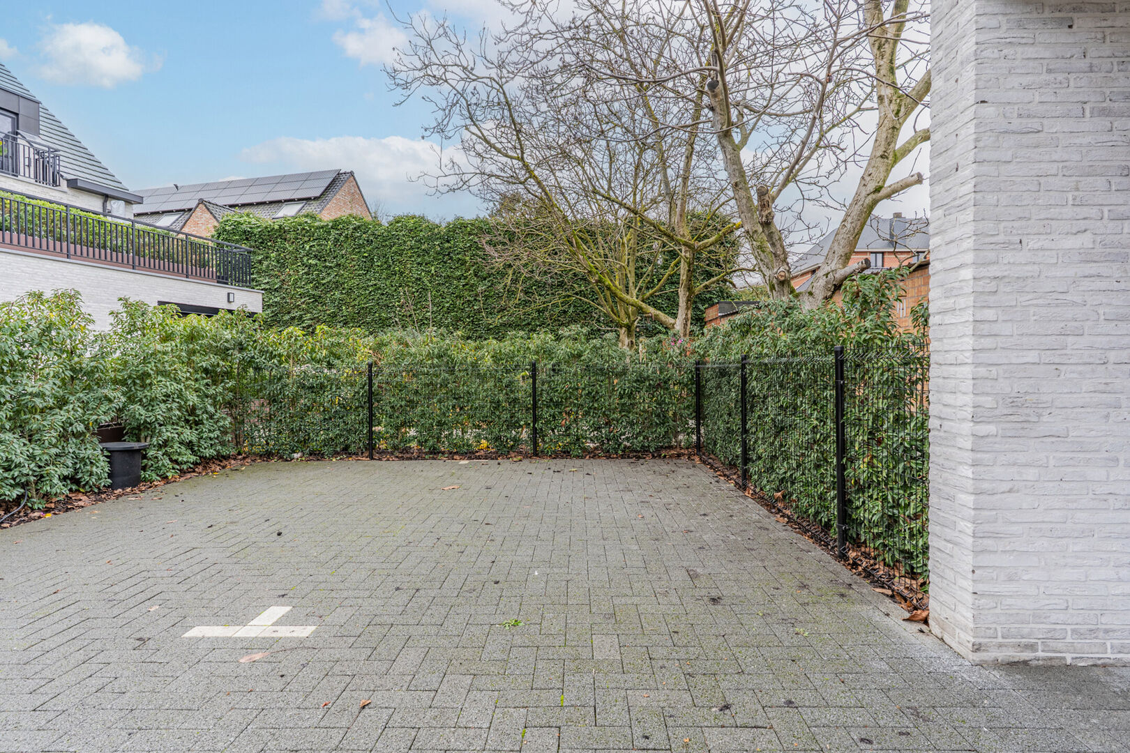 Het appartement is voorzien van 2 parkeerplaatsen: een ondergrondse parkeerplaats, een bovengrondse staanplaats met laadvororzieningen en een kelderberging. De bewoner kan ook gebruik maken van de gemeenschappelijke fietsenstalling.