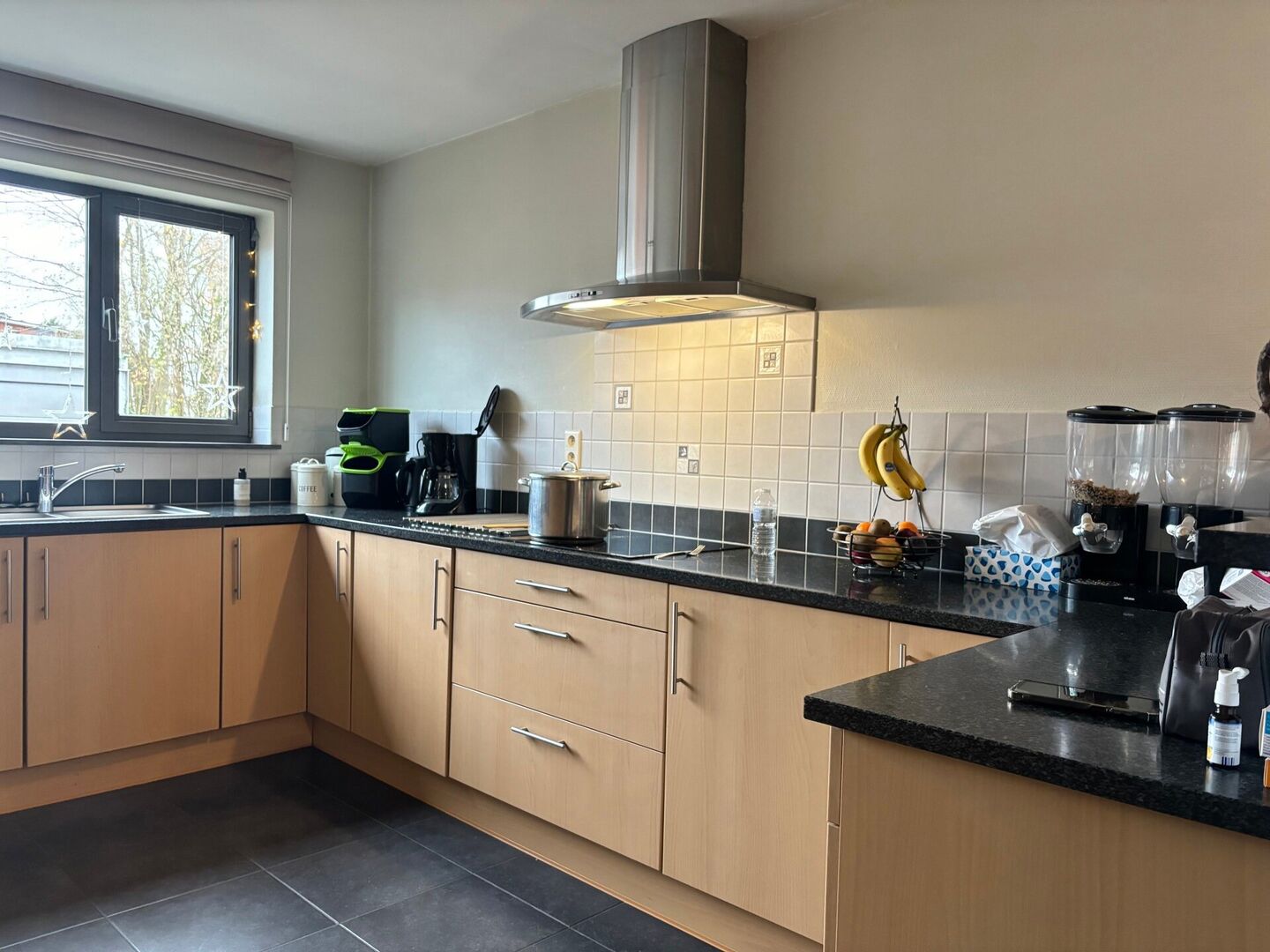 We betreden het appartement via een afzonderlijke ingang en is voorzien van een inkomhal met gastentoilet, een zeer lichte woonkamer, een ruime open keuken met eetplaats en een bureauruimte.