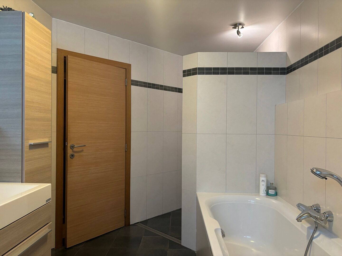Verder vinden we 2 slaapkamers en een volledig ingerichte badkamer met douche en bad. Er is een kelder waar aansluiting is voor de wasmachine en droogkast.