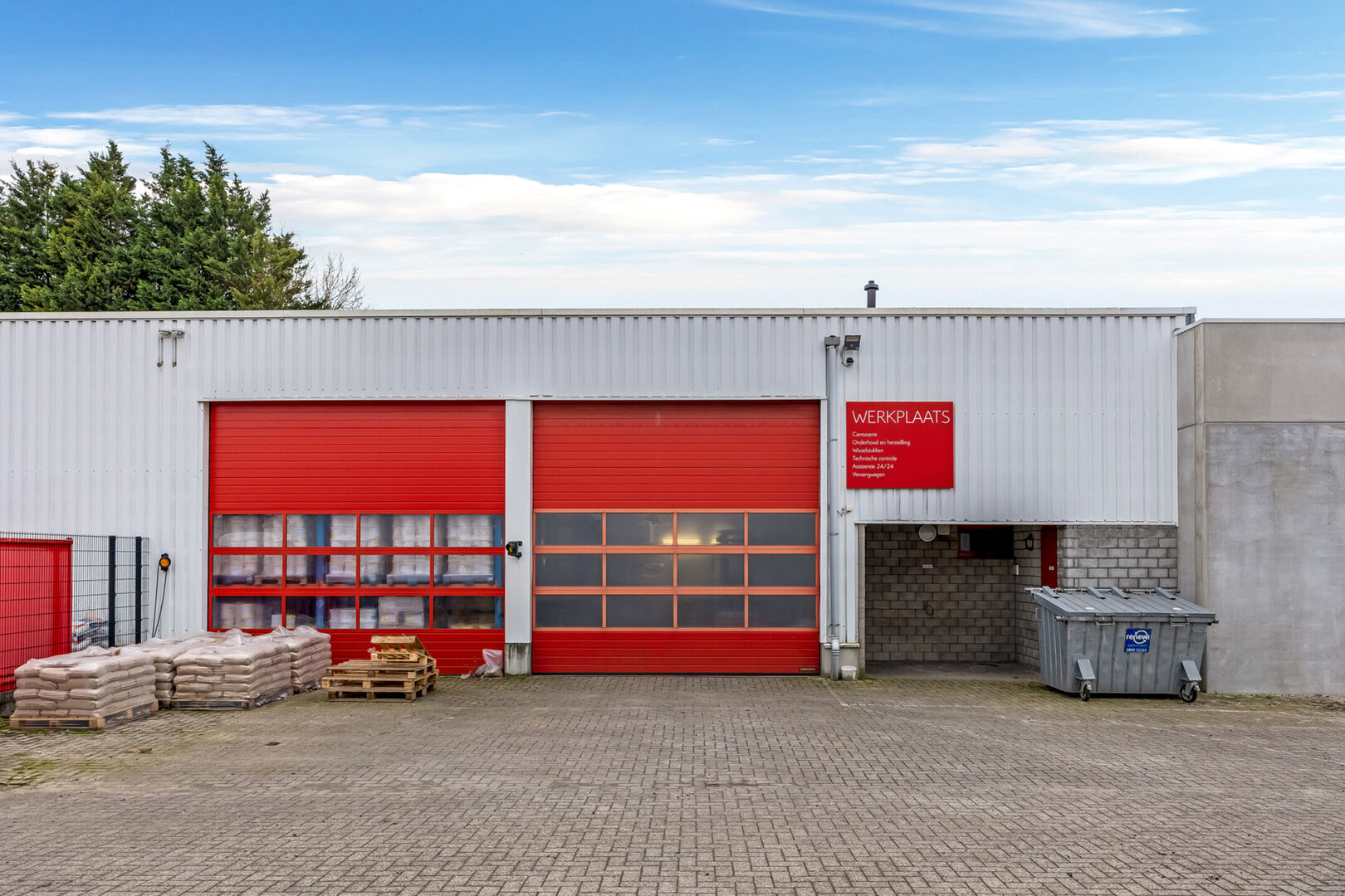 De industriële poort van 420 x 460 zorgt voor een vlotte toegang tot het gebouw.
