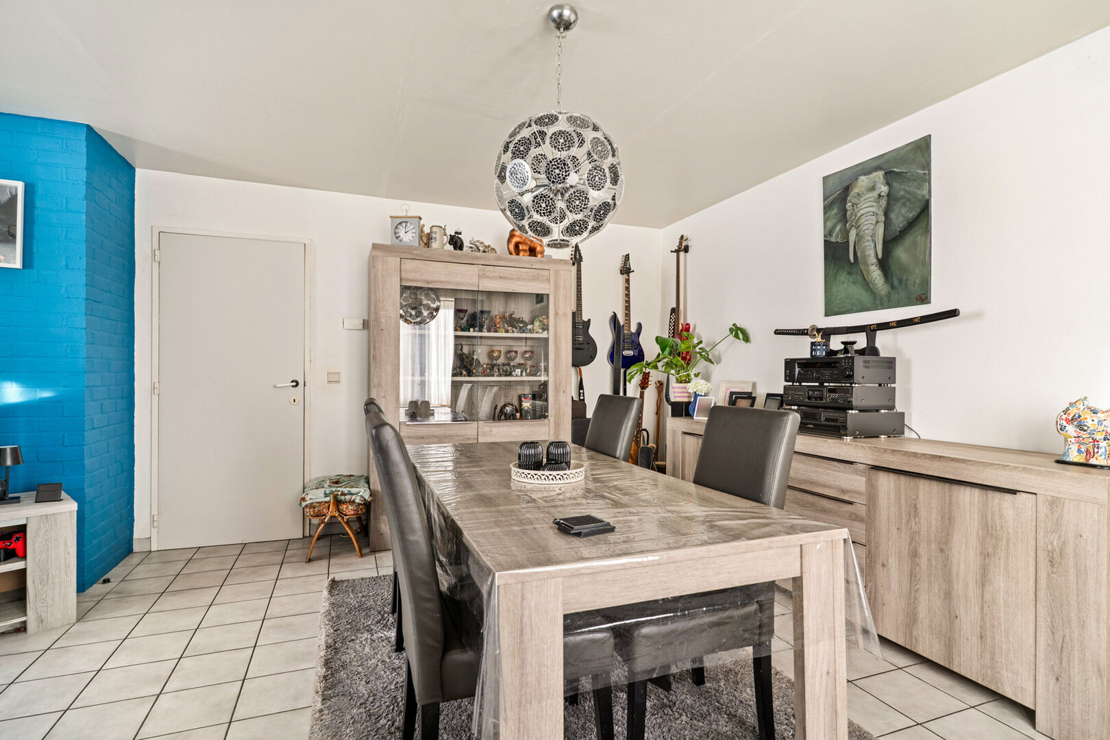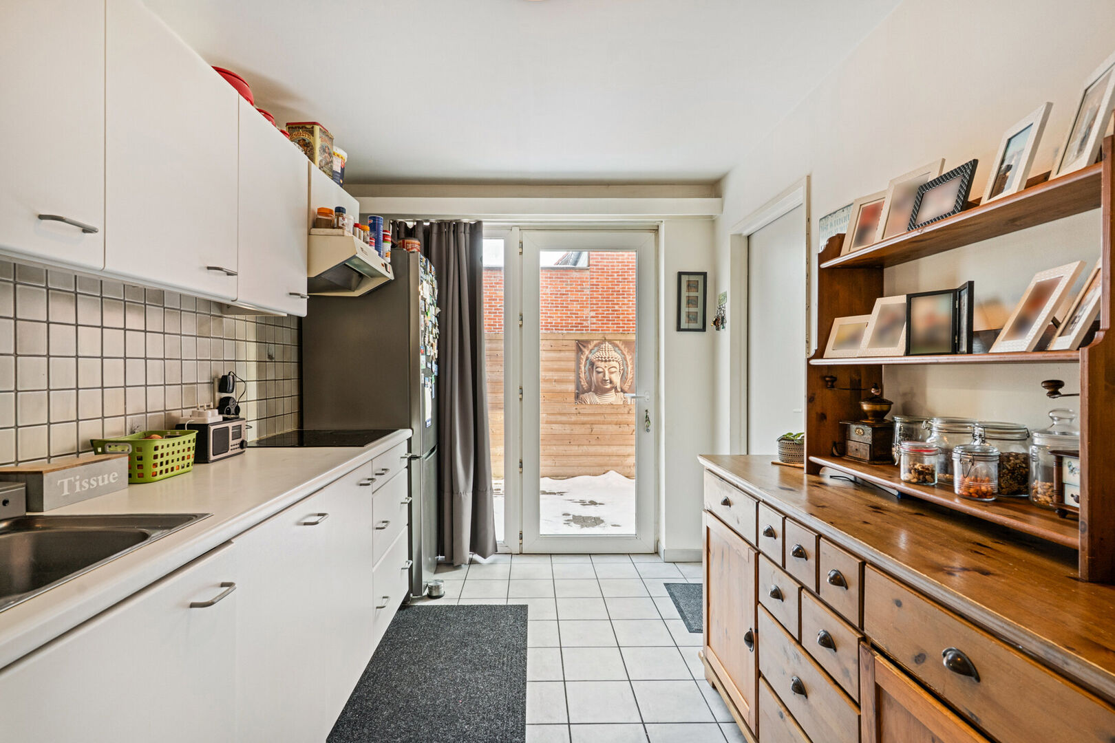 De woonkamer met eetgedeelte vormt het hart van de woning, waar grote raampartijen zorgen voor een overvloed aan natuurlijk daglicht. Deze open structuur creëert onmiddellijk een gevoel van ruimte en welzijn. De aangrenzende gesloten keuken met aparte deur naar de tuinpartij is compact maar zeer praktisch vormgegeven, met alle essentiële voorzieningen voor een comfortabel dagelijks leven en voldoende ruimte voor moderne apparatuur.