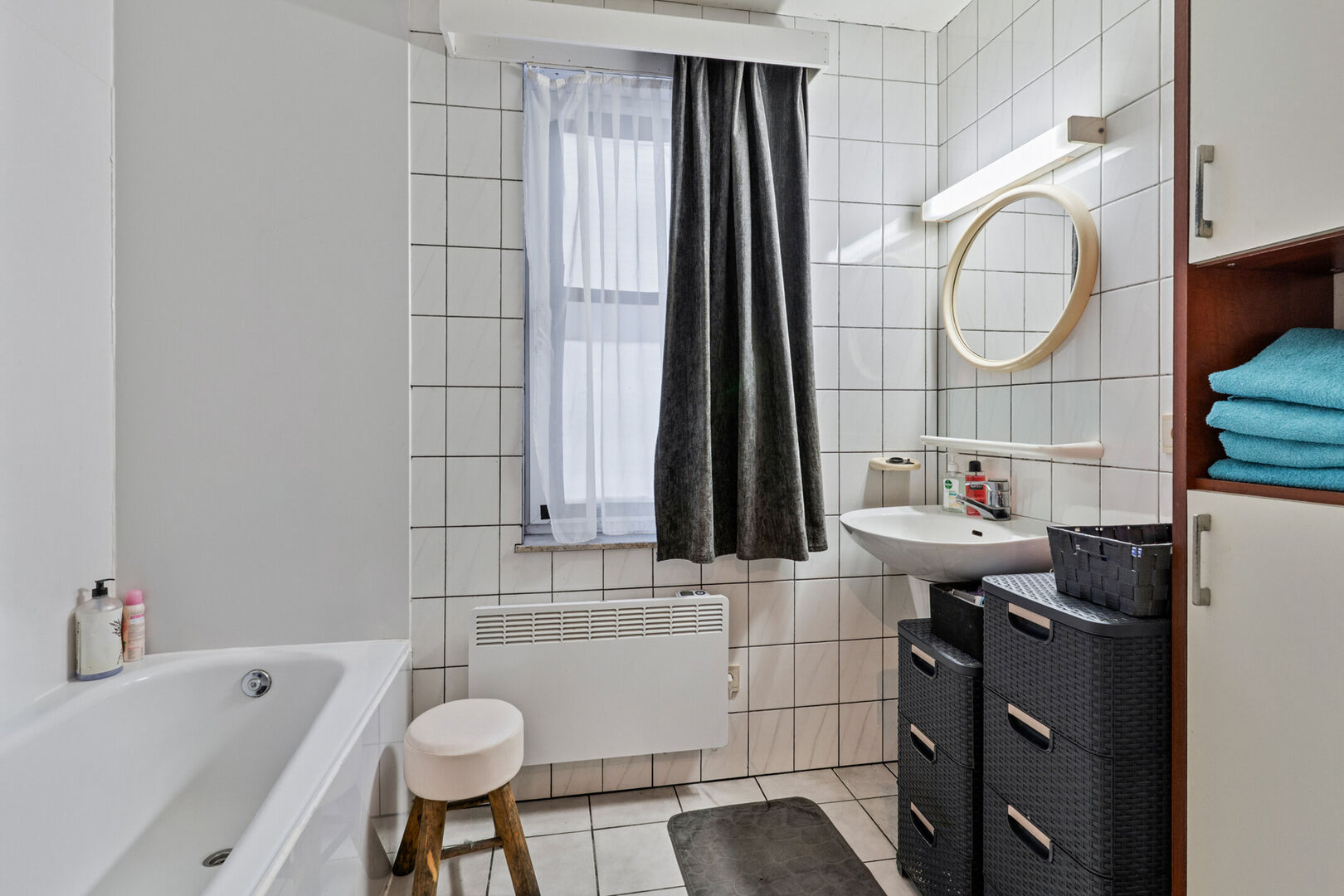 De hoofdslaapkamer biedt royale ruimte voor een dubbel bed en voldoende opbergmogelijkheden, terwijl de tweede slaapkamer inzetbaar is als kinderkamer, thuiskantoor of gastenkamer. De badkamer is voorzien van een bad en wastafel en het aparte toilet zorgt voor extra comfort in het dagelijks gebruik. Deze praktische indeling via de centrale inkomhal optimaliseert zowel privacy als functionaliteit.
