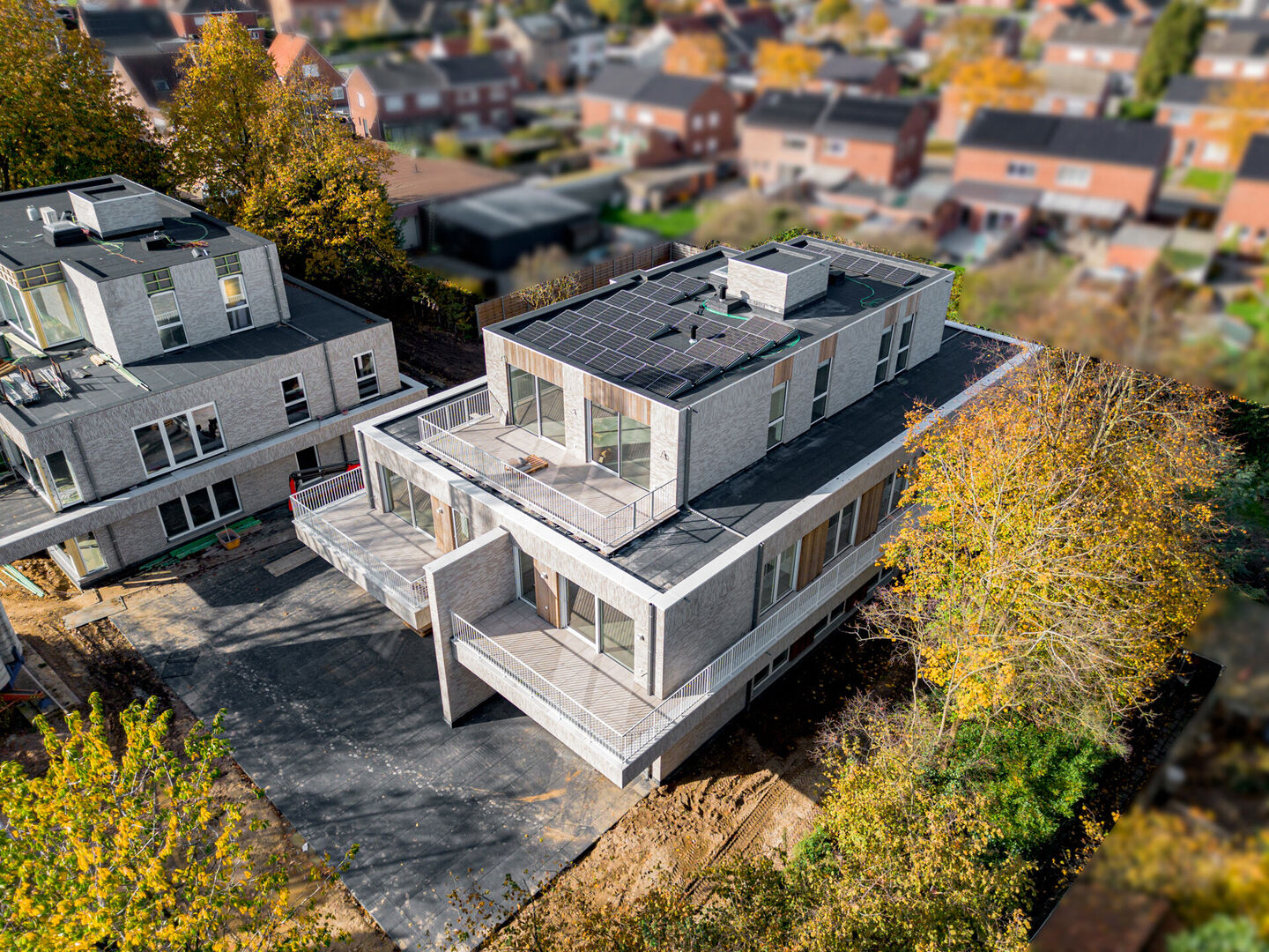 Zowel de villa als de urban villa’s nestelen zich in het bestaande bomenpatrimonium waarbij de tuin verder wordt aangelegd onder leiding van een tuinarchitect’.