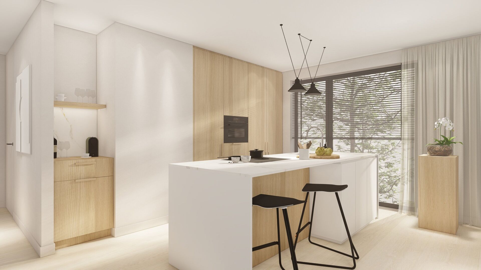Tussen beide bouwvolumes wordt een mooie, groene parkzone aangelegd.
