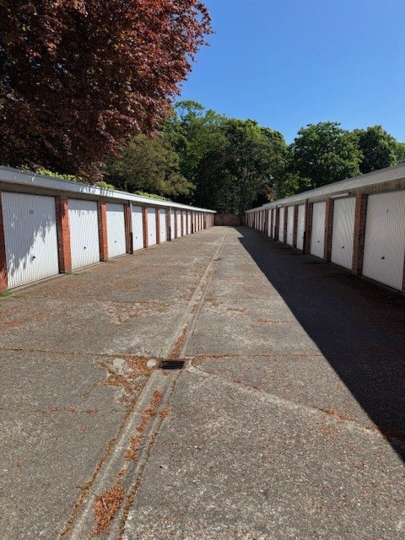 De garageboxen zijn ideaal voor stalling van wagens, opslag of kleine logistieke toepassingen.