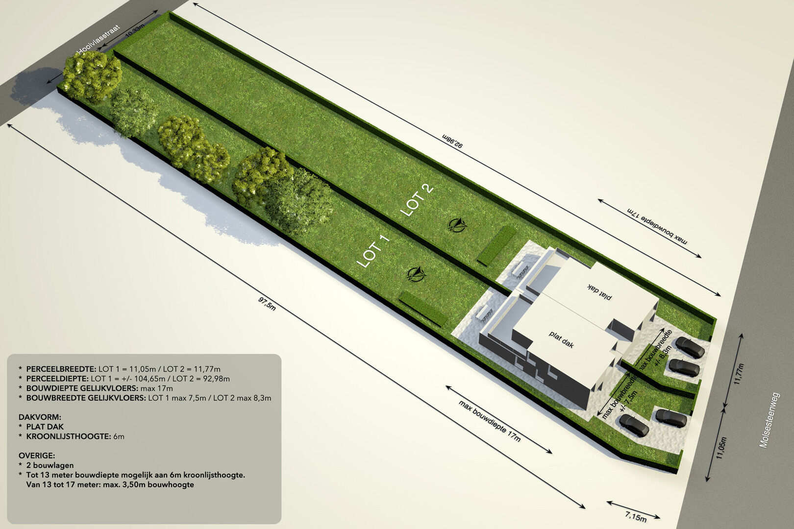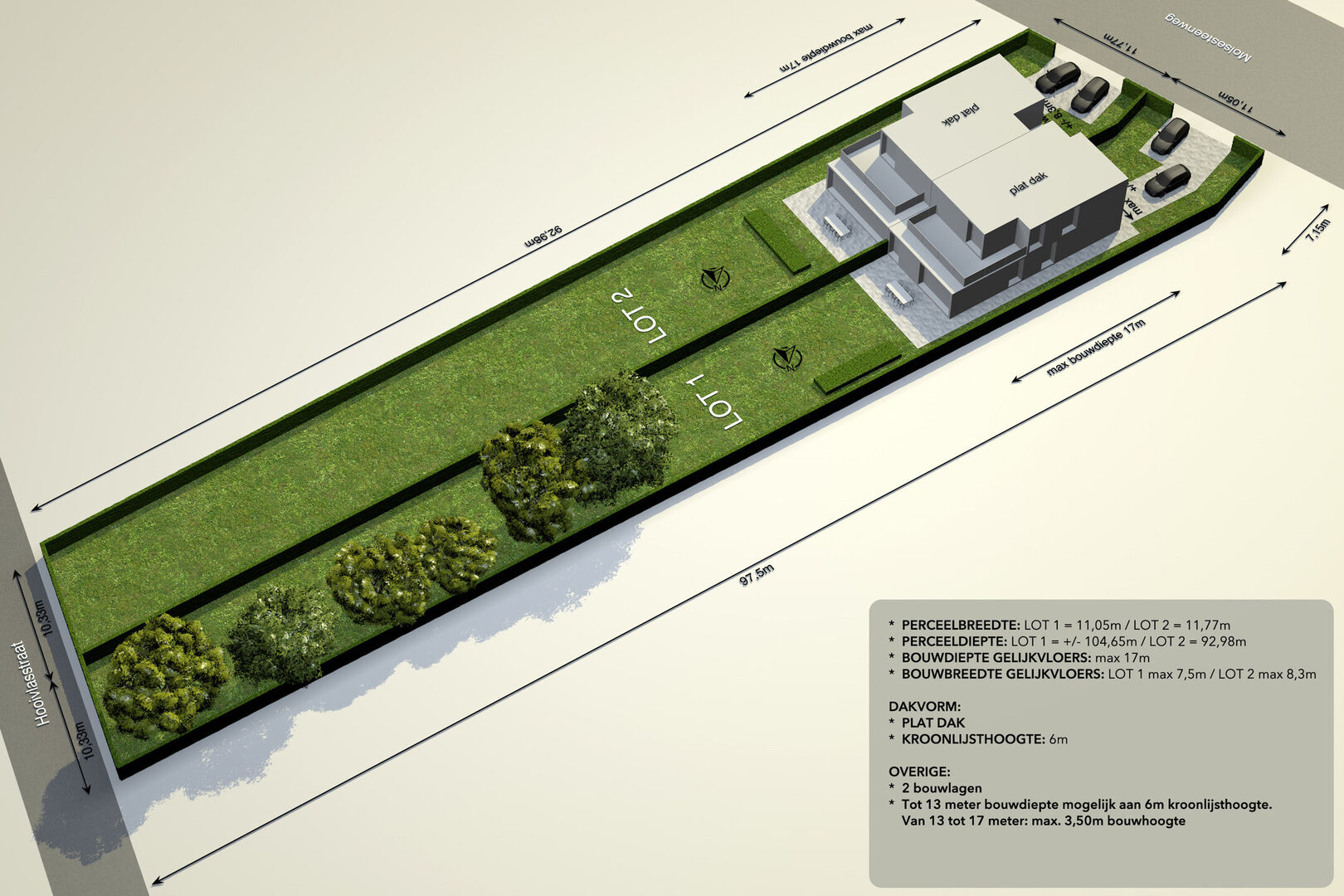 In de 3D beelden gaat het om lot 1, het is eveneens mogelijk te bouwen met een zadeldak.
