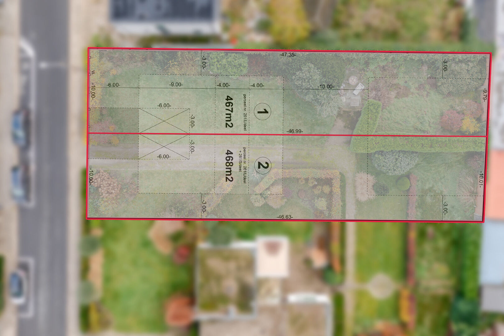 De perceeldiepte bedraagt ca 47 meter.