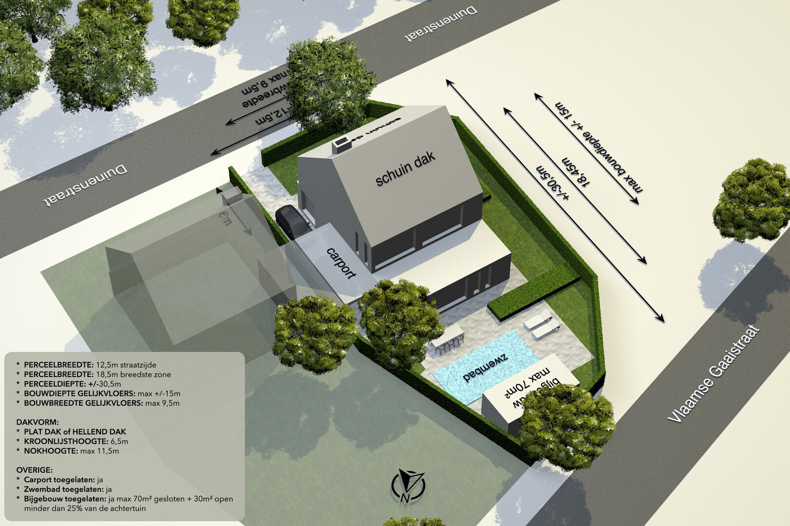 Carport en zwembad toegestaan