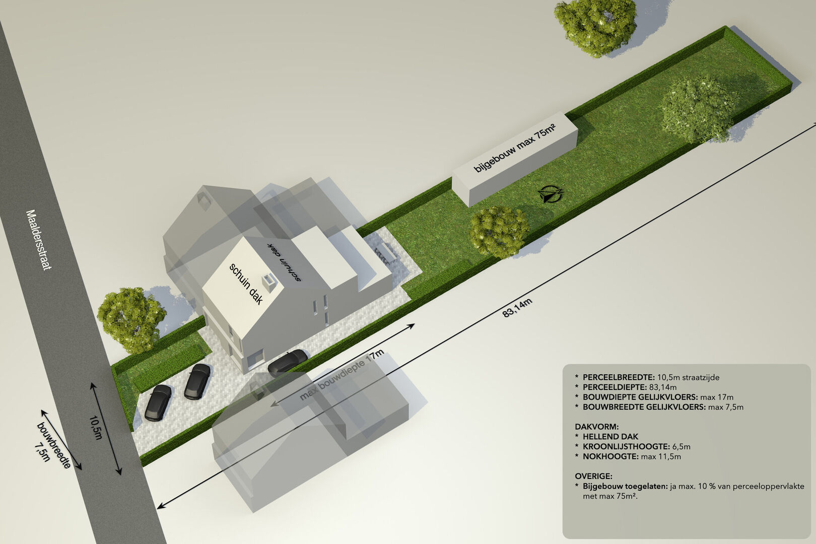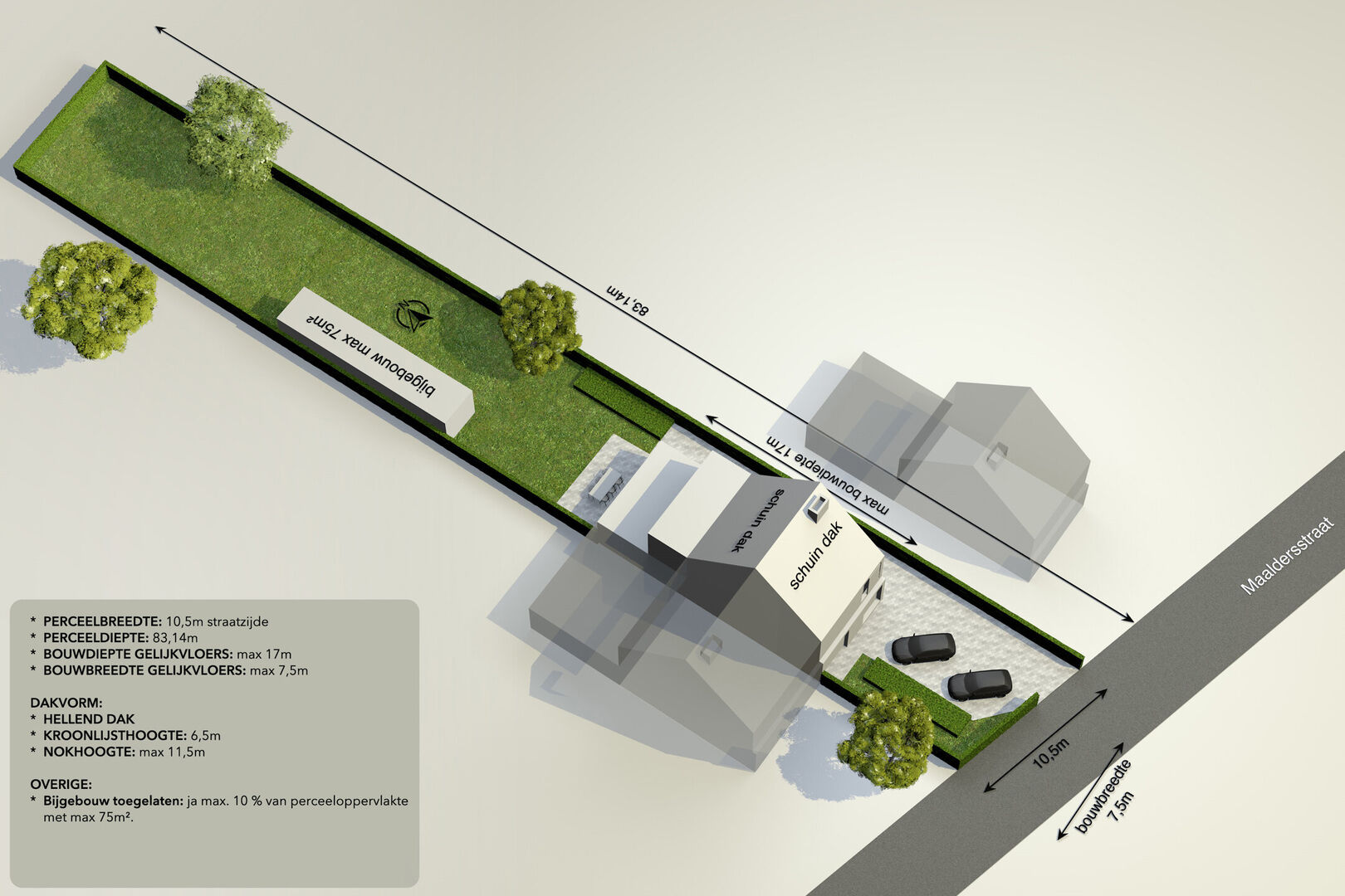 De getoonde 3D tekeningen zijn het maximum bouwvolume dat toegestaan is.