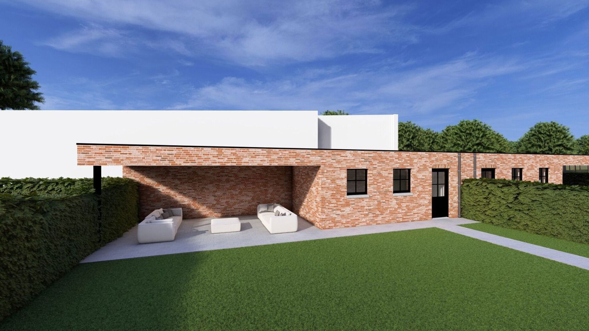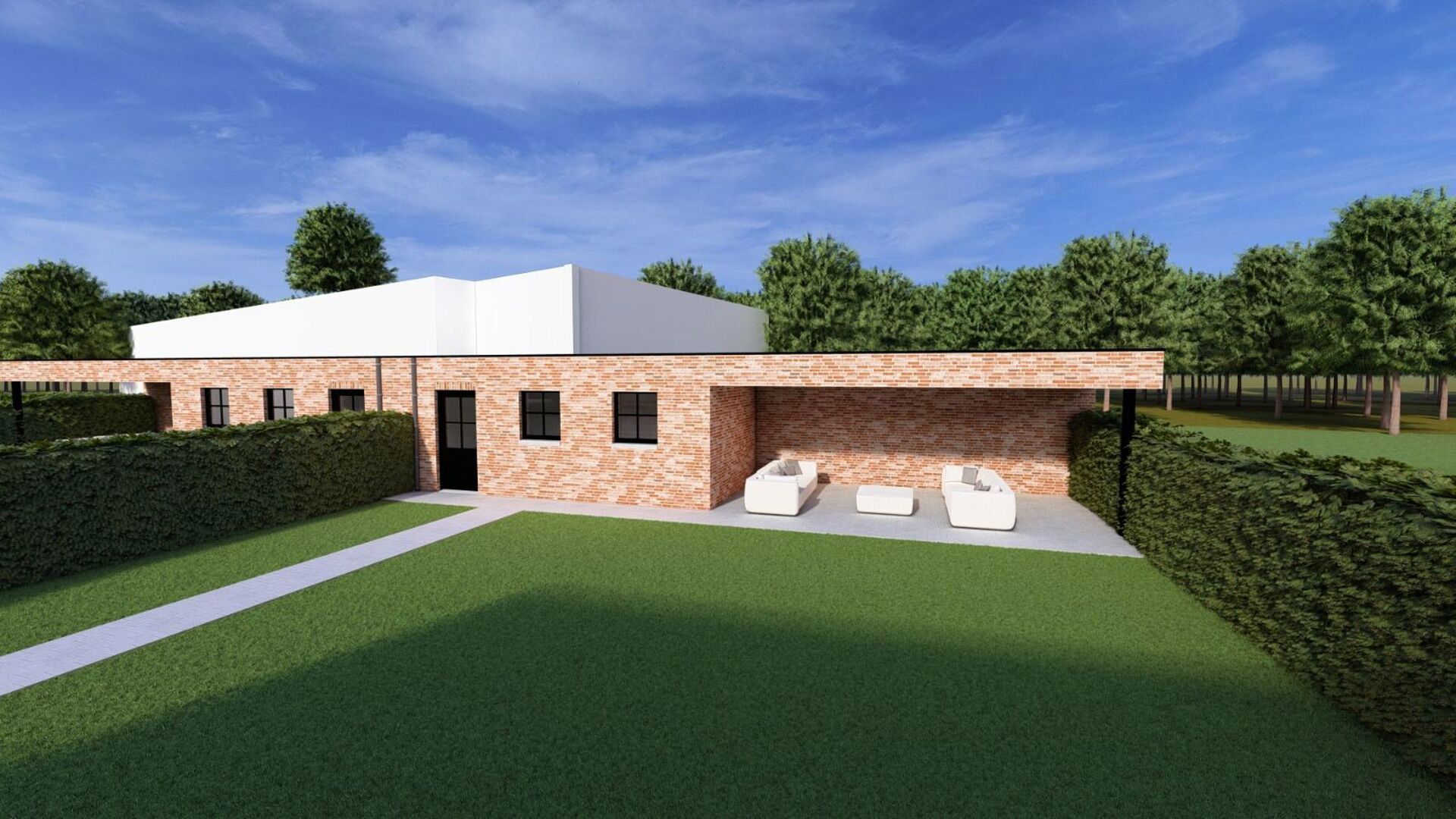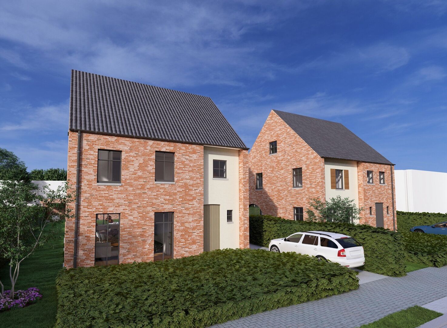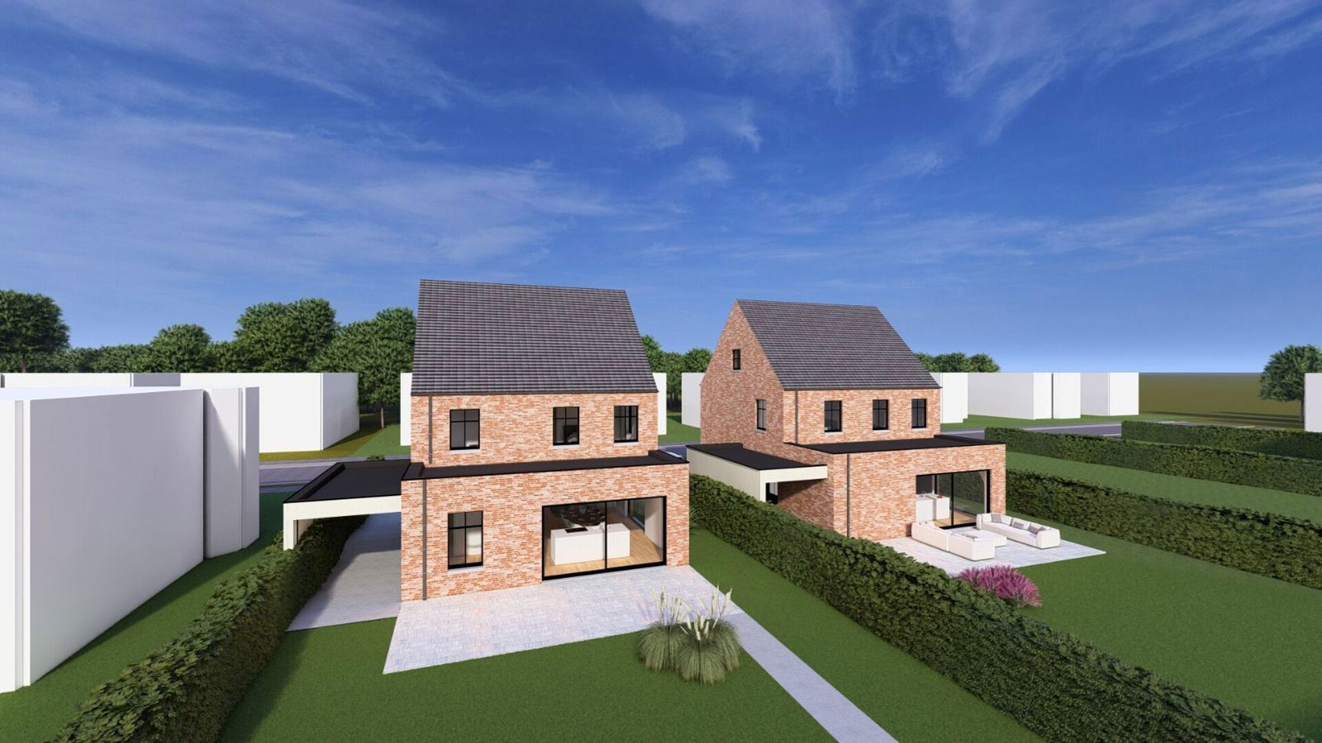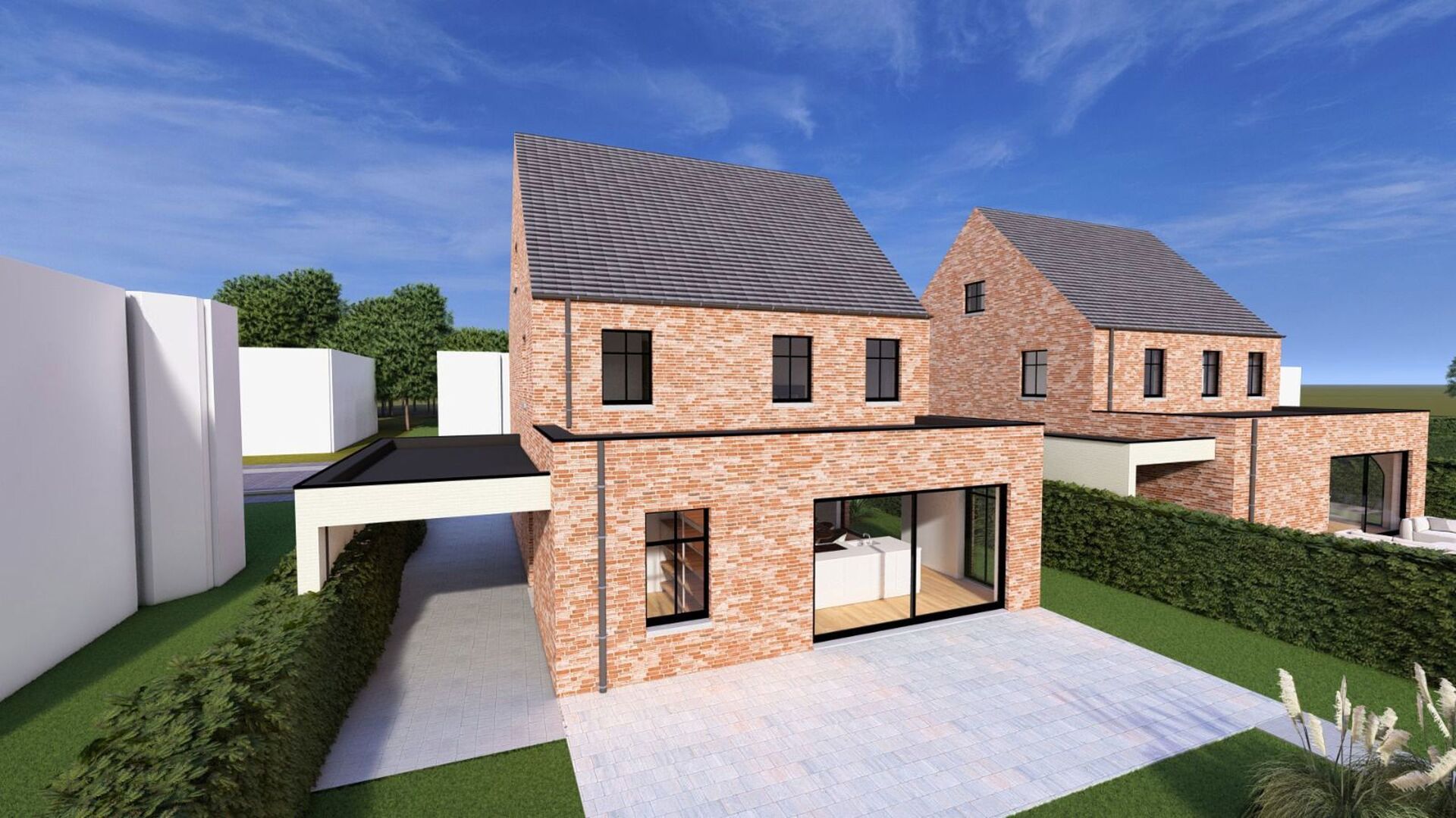 Deze nieuwbouwwoning zal volledig afgewerkt worden incl. oprit, afsluiting en terras.