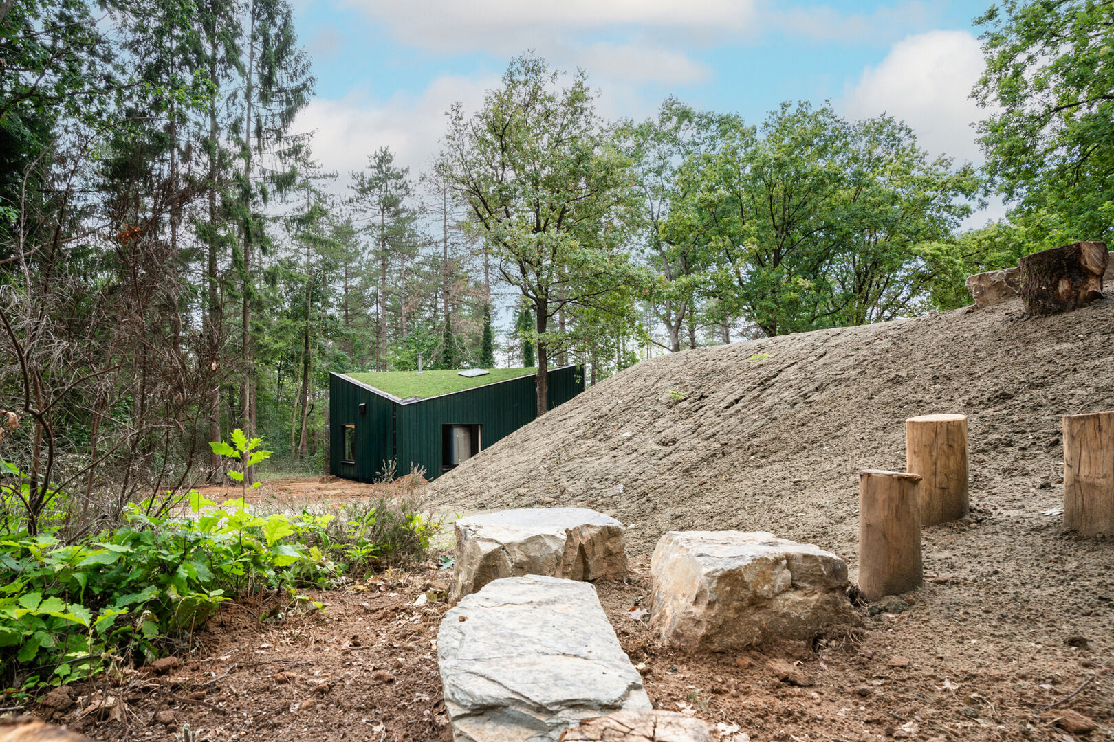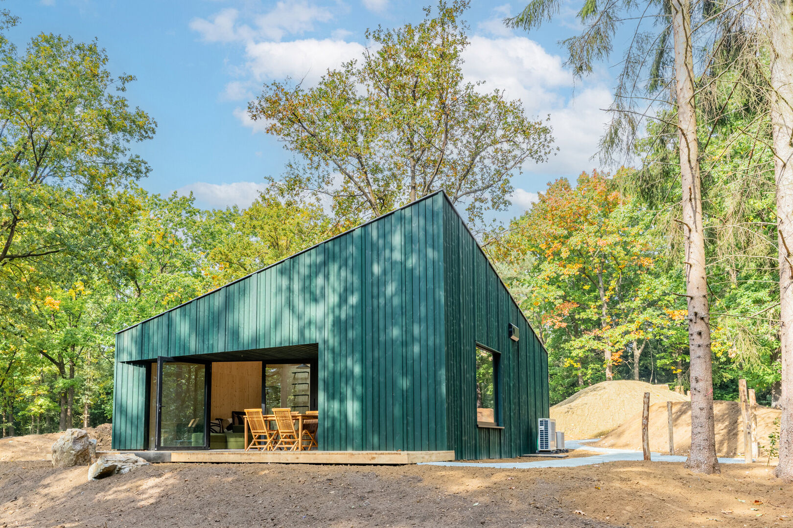 Het domein van 3 hectare, met aansluitend nog eens 3 hectare privébos, is volledig autovrij. Elke lodge staat op een ruim perceel omgeven door bomen en is afgewerkt met natuurlijke materialen, groendaken en optionele wellnessvoorzieningen zoals een sauna.