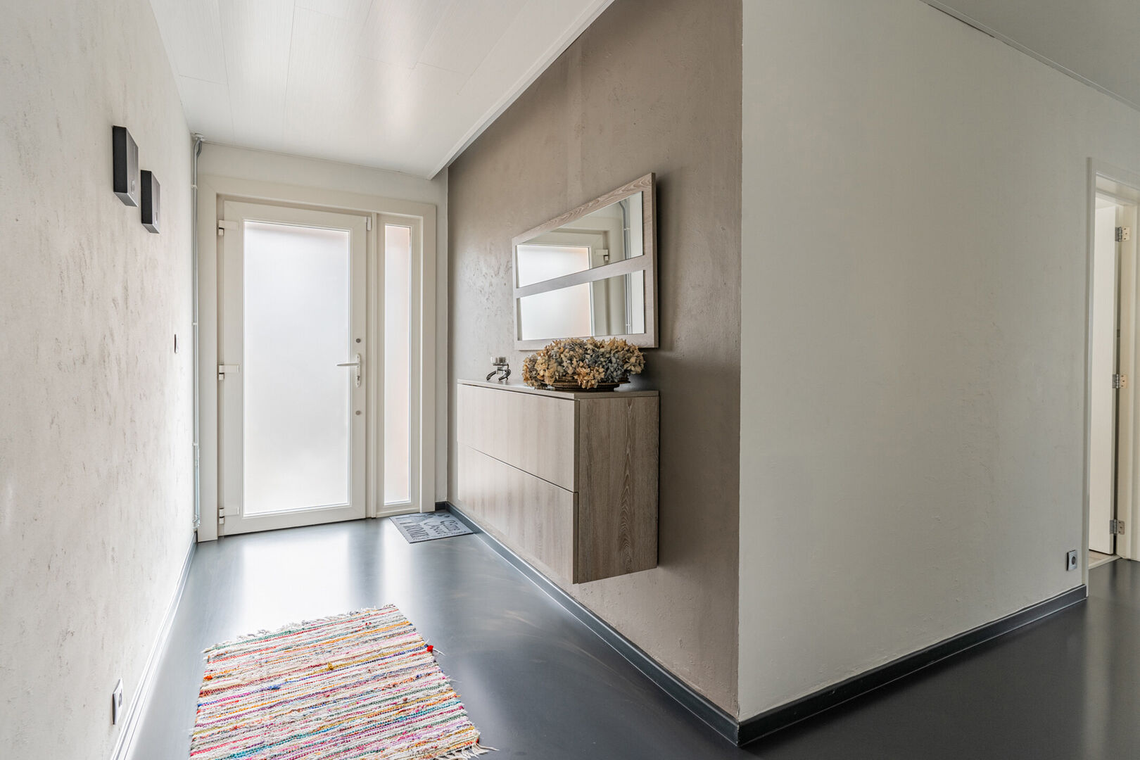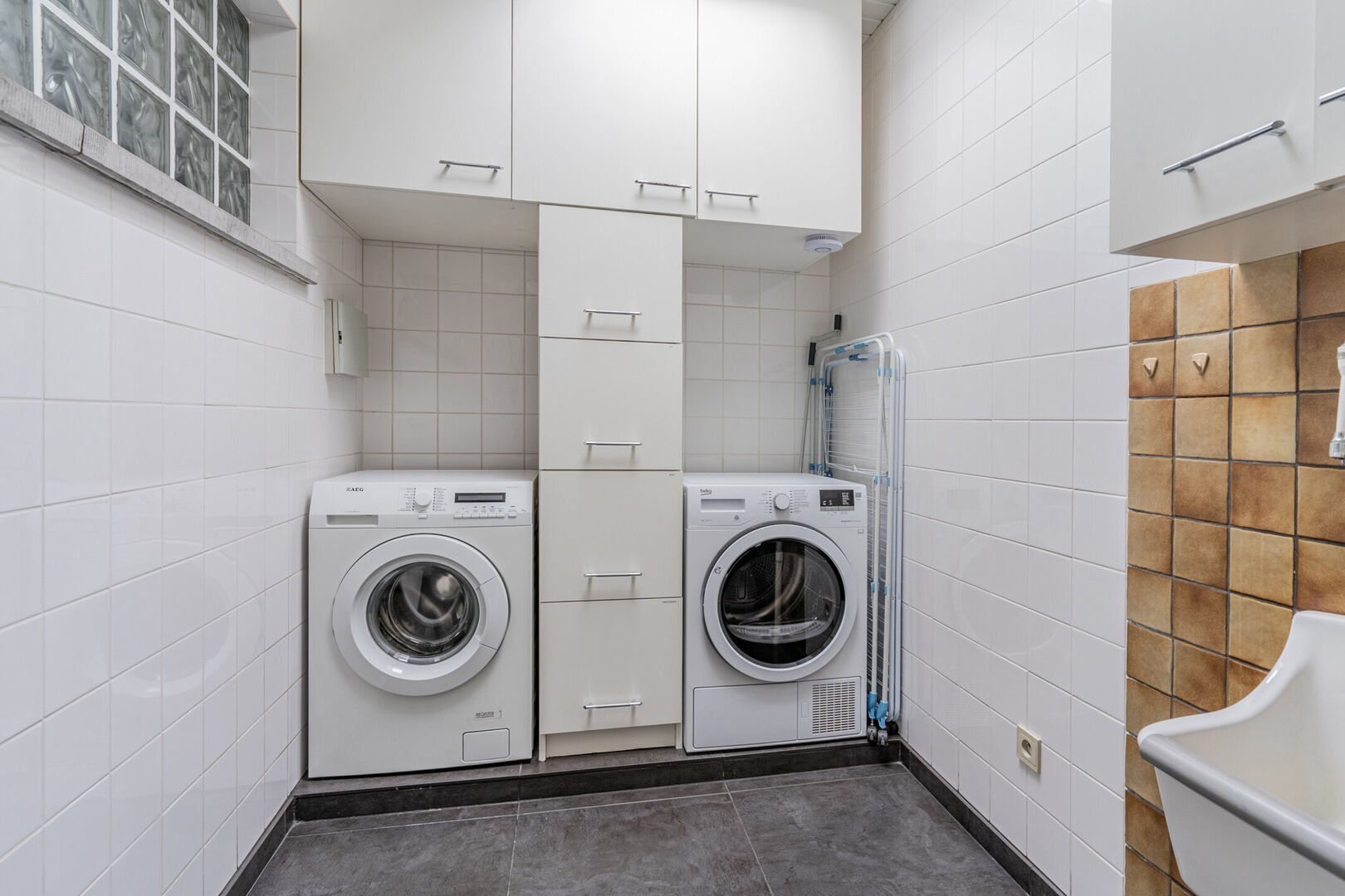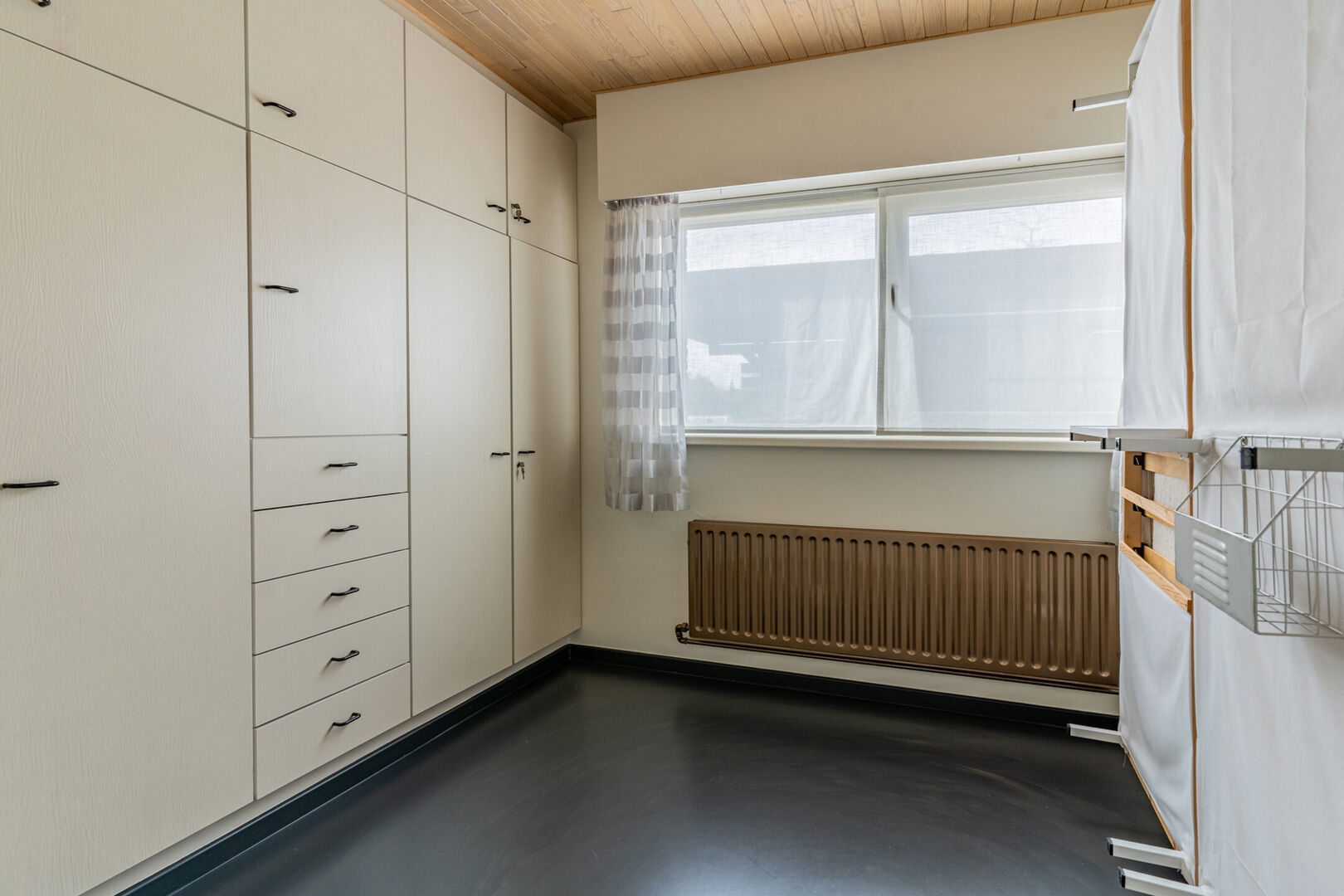 De ruime inpandige garage voegt nog extra potentieel toe. Aansluitend bevindt zich een berging met plaats voor wasmachine, droogkast en extra opbergruimte.