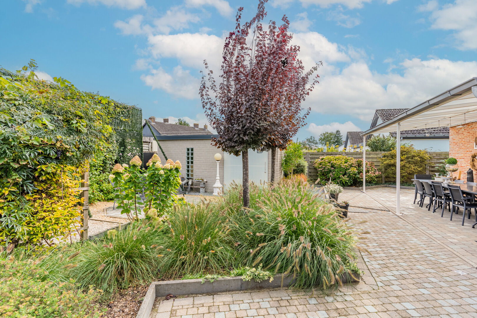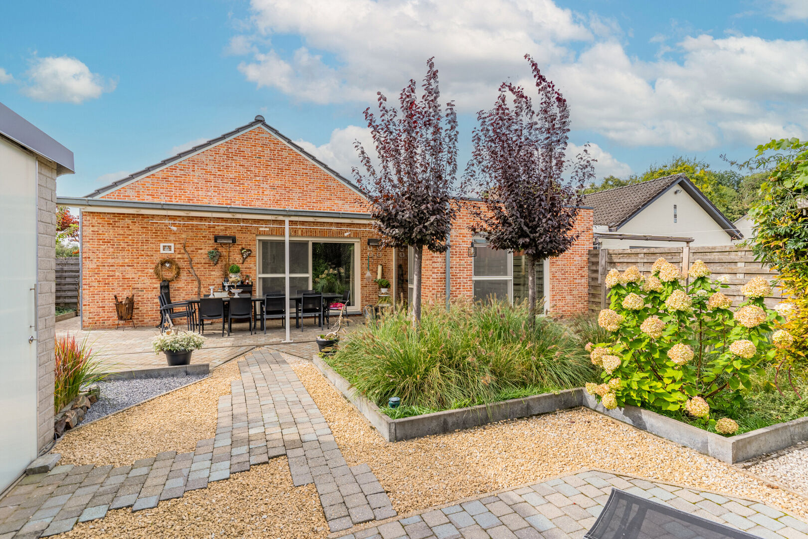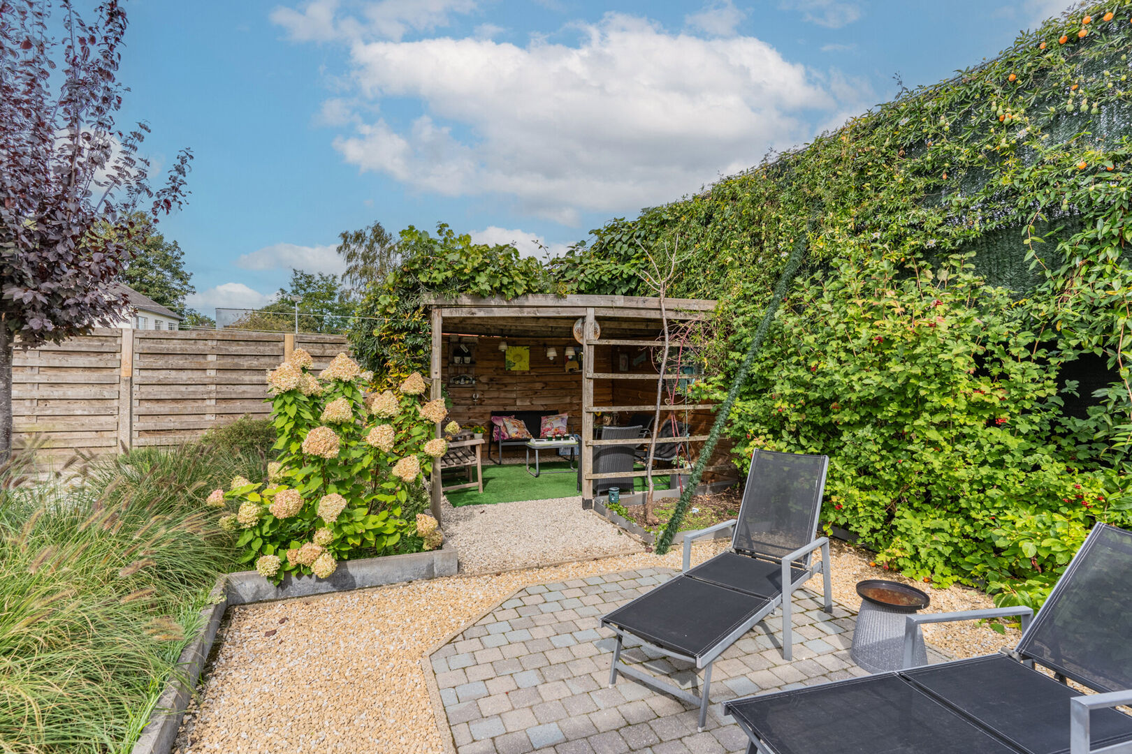 De tuin is overzichtelijk en onderhoudsvriendelijk ingericht.