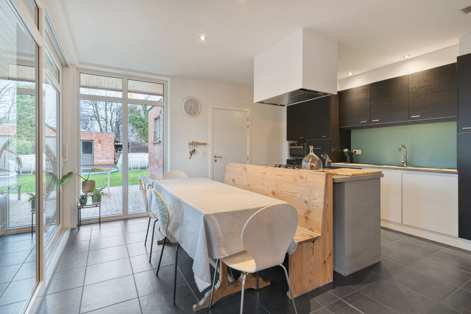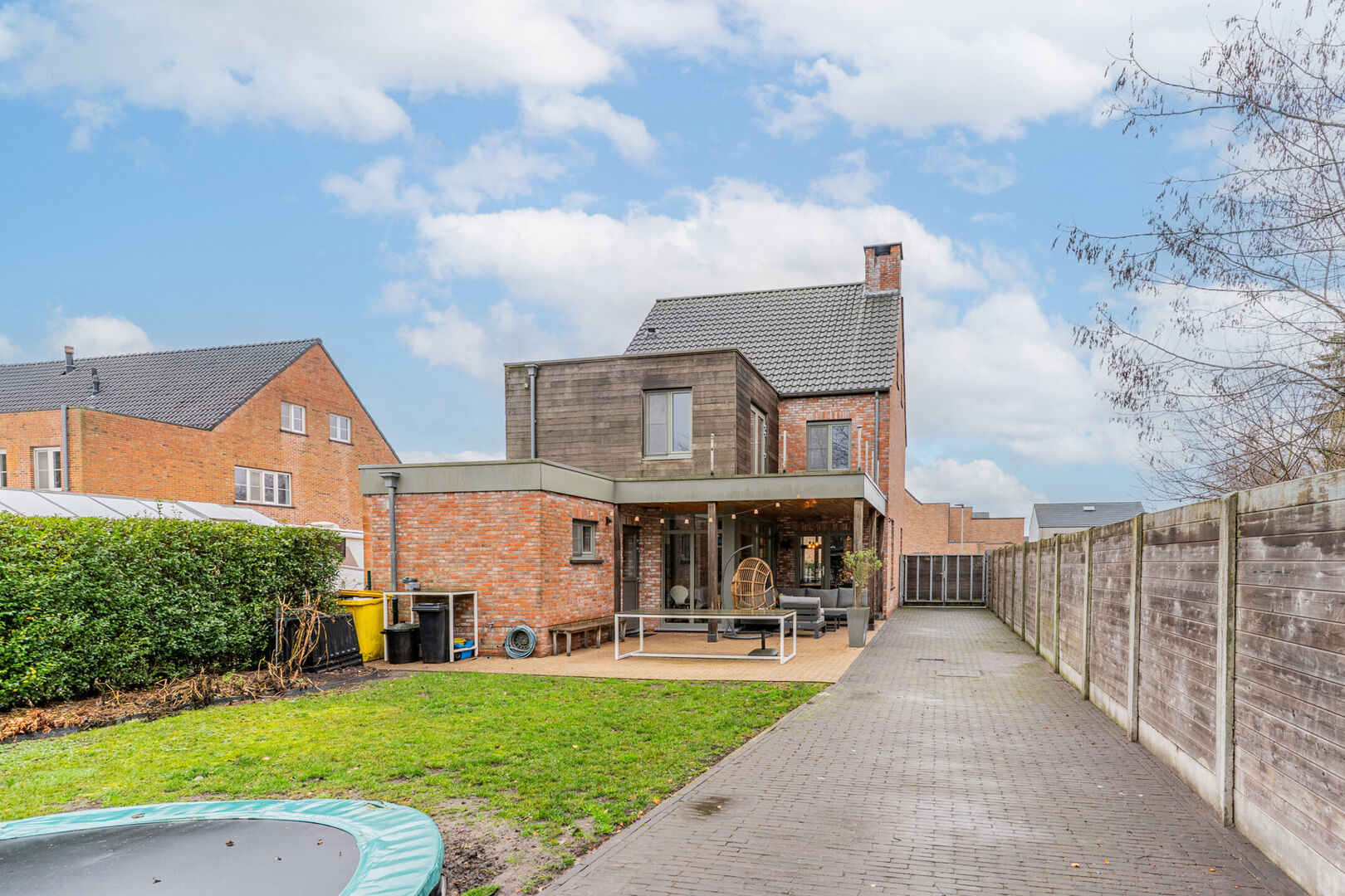 De onderhoudsvriendelijke tuin met garage is een absolute troef. Het biedt de perfecte setting voor zomerse barbecues onder de lounge hoek. .