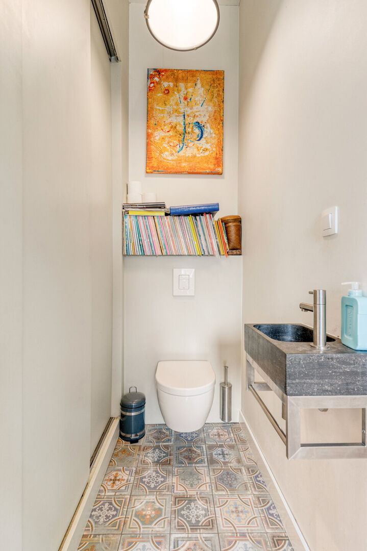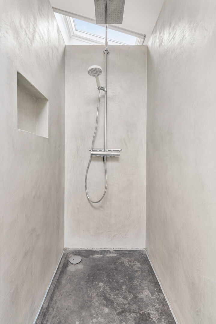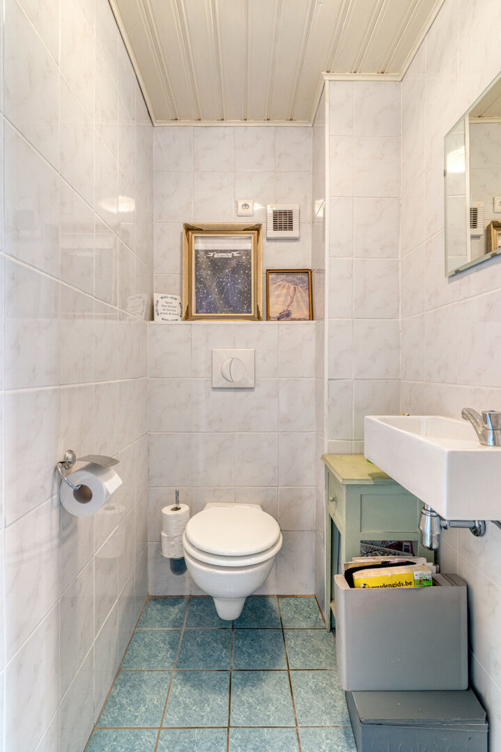 Bij binnenkomst word je verwelkomd in een inkomhal die leidt naar een open leefruimte met eethoek, zithoek en een open keuken. Aansluitend vind je een badkamer met inloopdouche, ligbad en lavabo, een gastentoilet en een praktische wasplaats. Vanuit de keuken heb je toegang tot een overdekt terras, ideaal om het hele jaar door van buiten te genieten.
