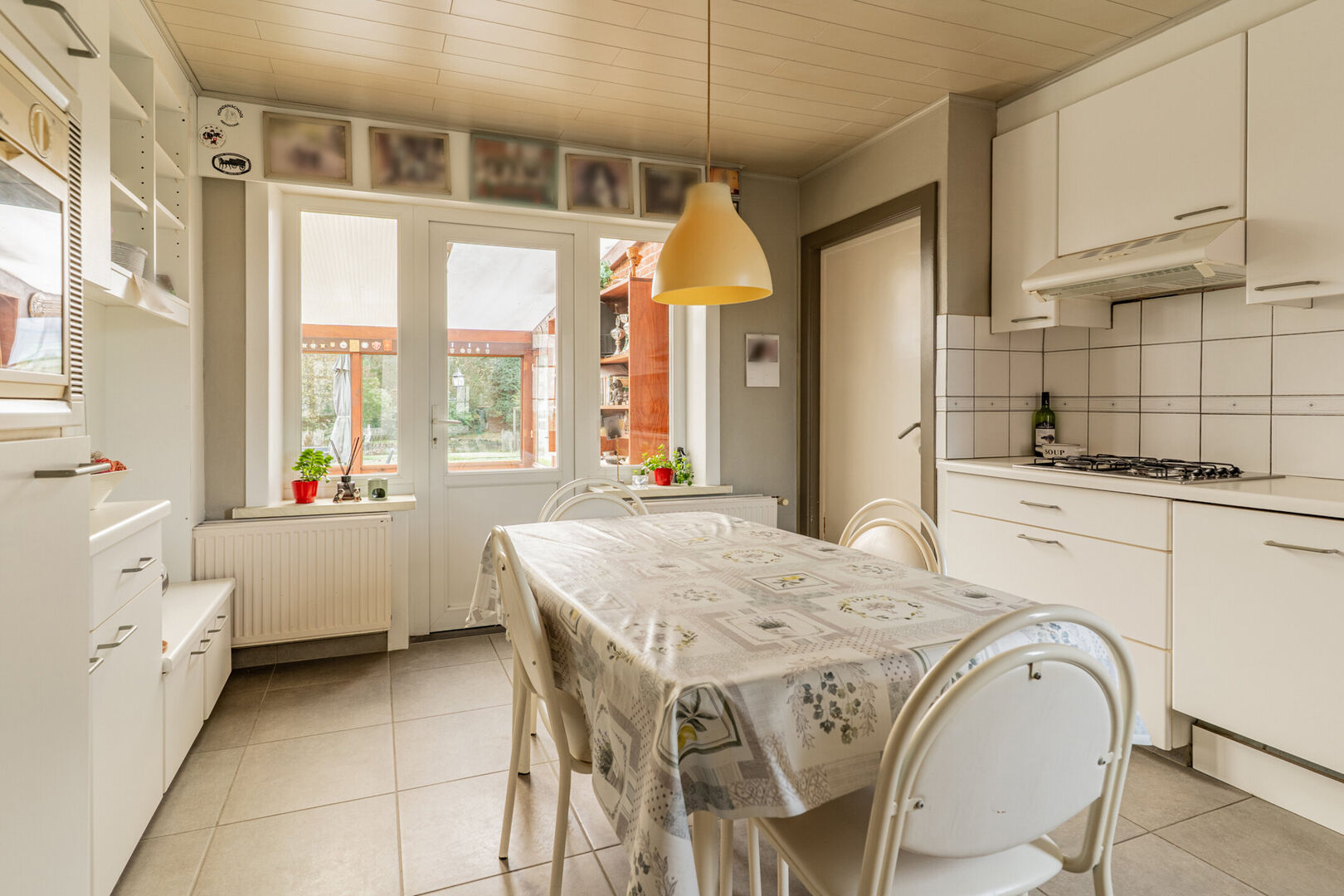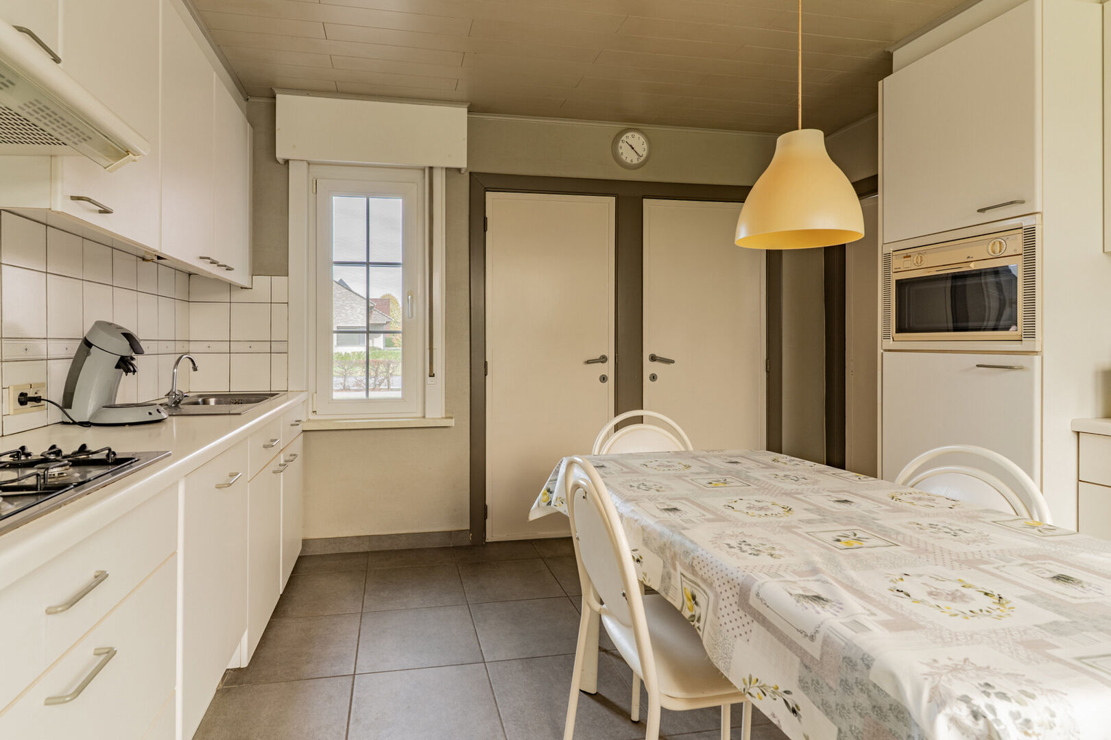 Via de inkomhal komen we in de woning, die toegang biedt tot de gezellige keuken vanwaar je naar de mooie tuin kan kijken. Aansluitend vinden we de leefruimte, bestaande uit een zit- en eethoek, met een extra gaskachel.