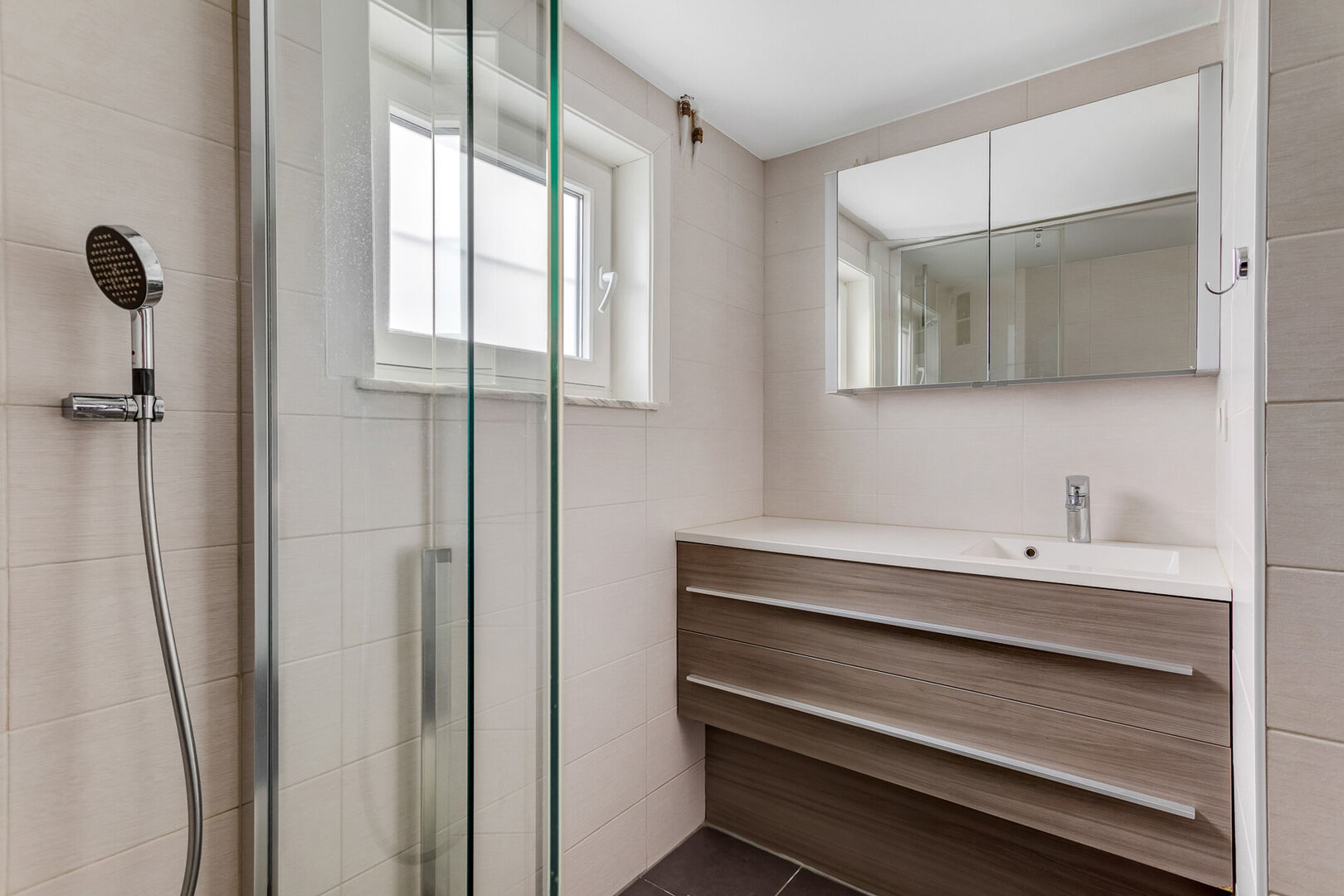 Verder is er nog een wasplaats en een gerenoveerde badkamer met inloopdouche, lavabo en spiegelkast. Het gastentoilet is ook volledig vernieuwd.