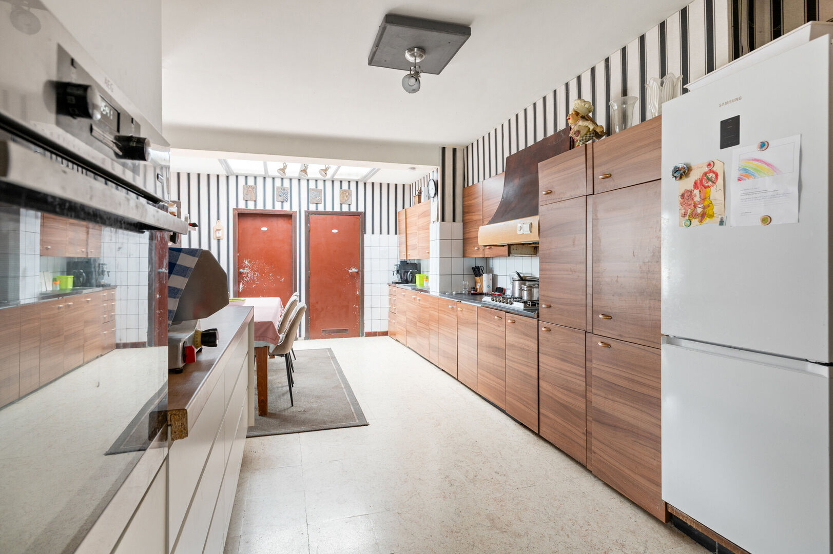 Vervolgens betreden we de centraal gelegen keukenpartij, welke van enorm veel lichtinval geniet, dankzij de vele glaspartijen.
