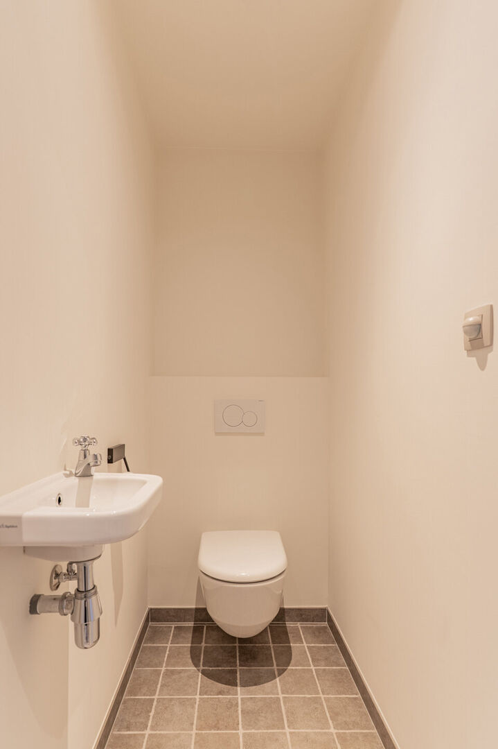 Op de eerste verdieping treffen we drie ruime slaapkamers, een badkamer, een apart toilet en een extra berging met de technische installaties. via een zoldertrap in deze berging komen we bij de handige en netjes afgewerkte bergzolder.