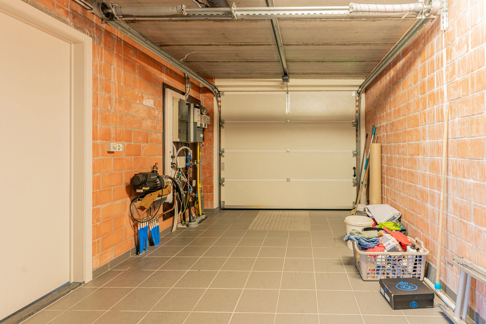 De volledig geïnstalleerde landelijke keuken is een echte blikvanger en volledig uitgerust met inductiekookplaat, vaatwasser, oven, microgolfoven, koelkast, diepvriezer en dubbele spoelbak. Aansluitend bevindt zich een praktische berging met douche en spoelbak en een inpandige garage, uiterst handig voor dagelijks gebruik