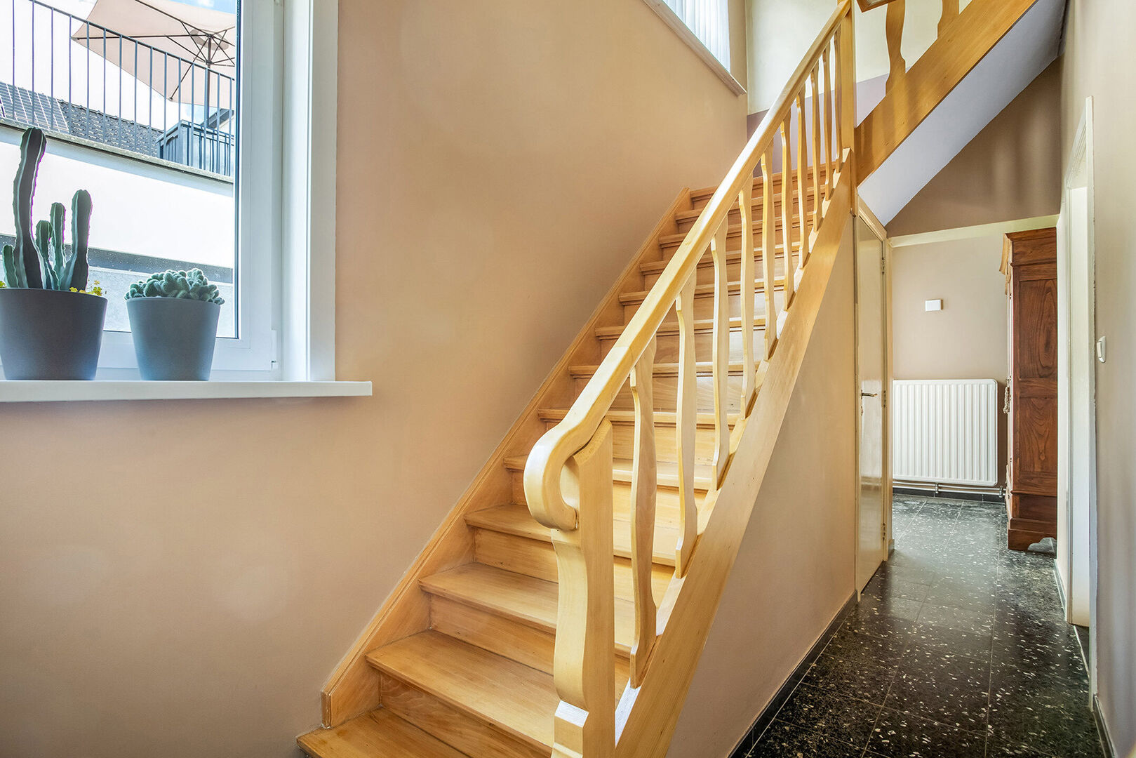 Op de eerste verdieping vinden we 3 à 4 slaapkamers, een eerste badkamer met toilet en ligbad en de master bedroom met dressing en badkamer met douche en toilet.