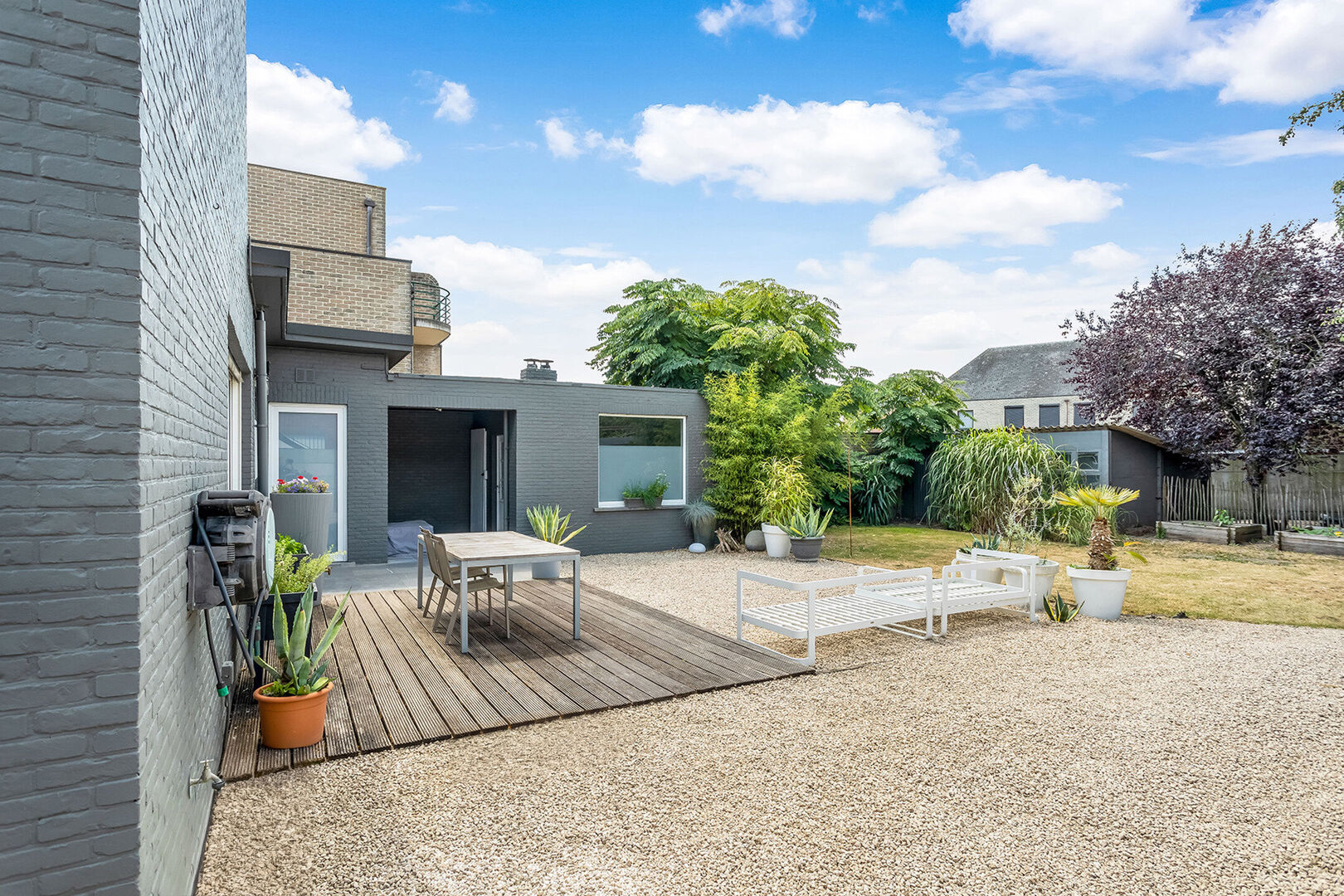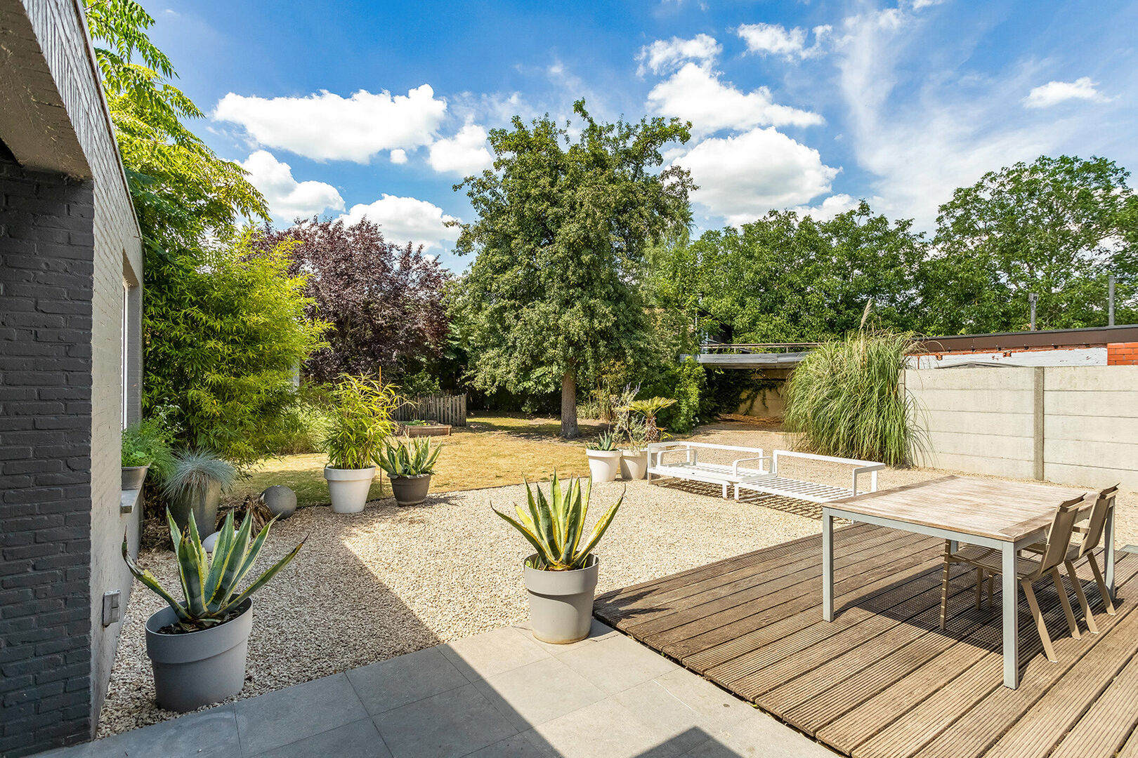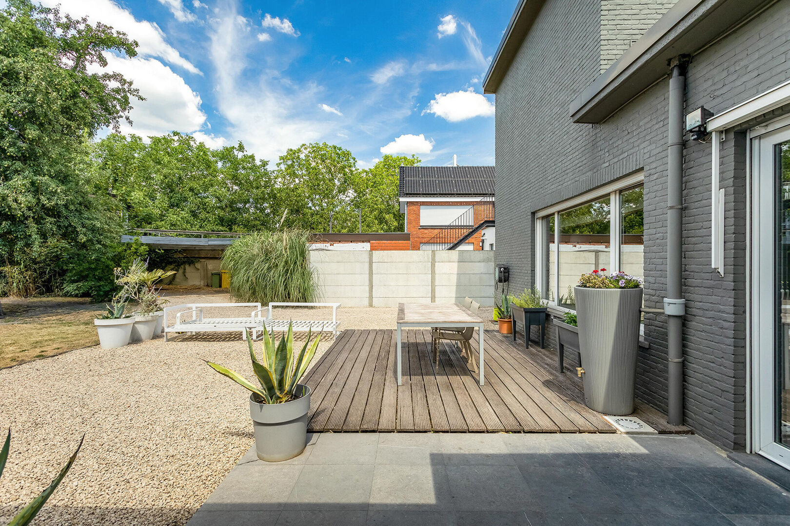 Achteraan de woning is een aangenaam vertoeven in de ruime en zeer zonnige tuin die beschikt over een terras, een tuinberging en een carport.