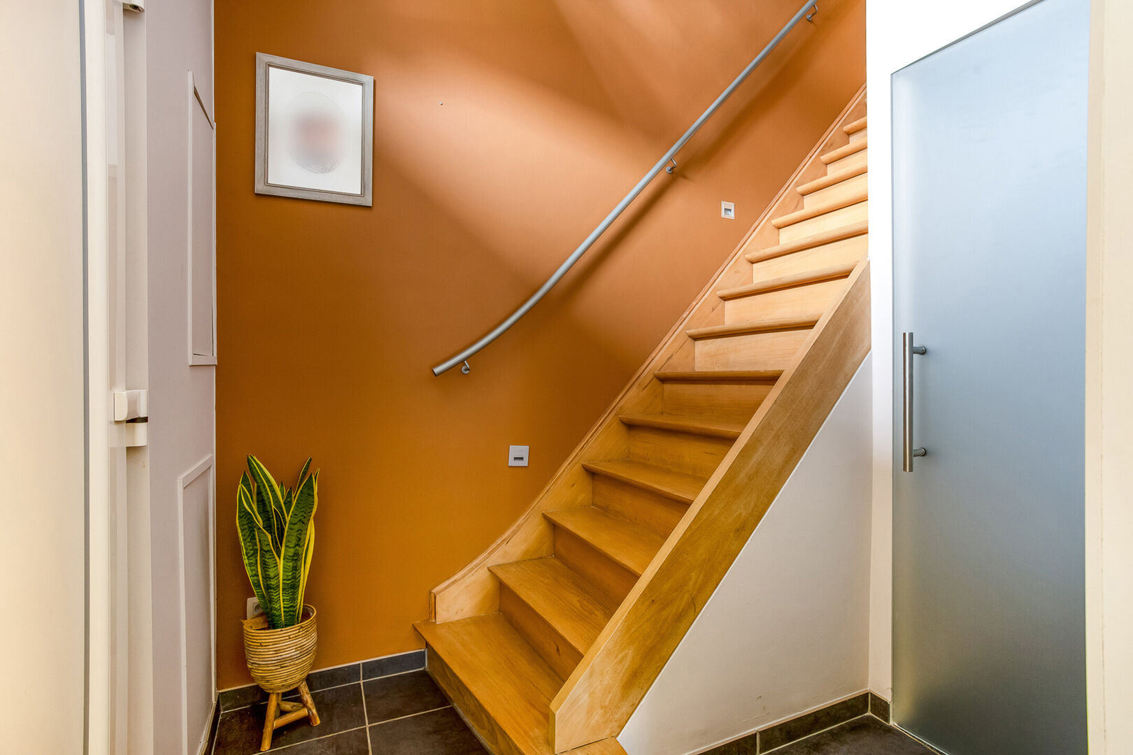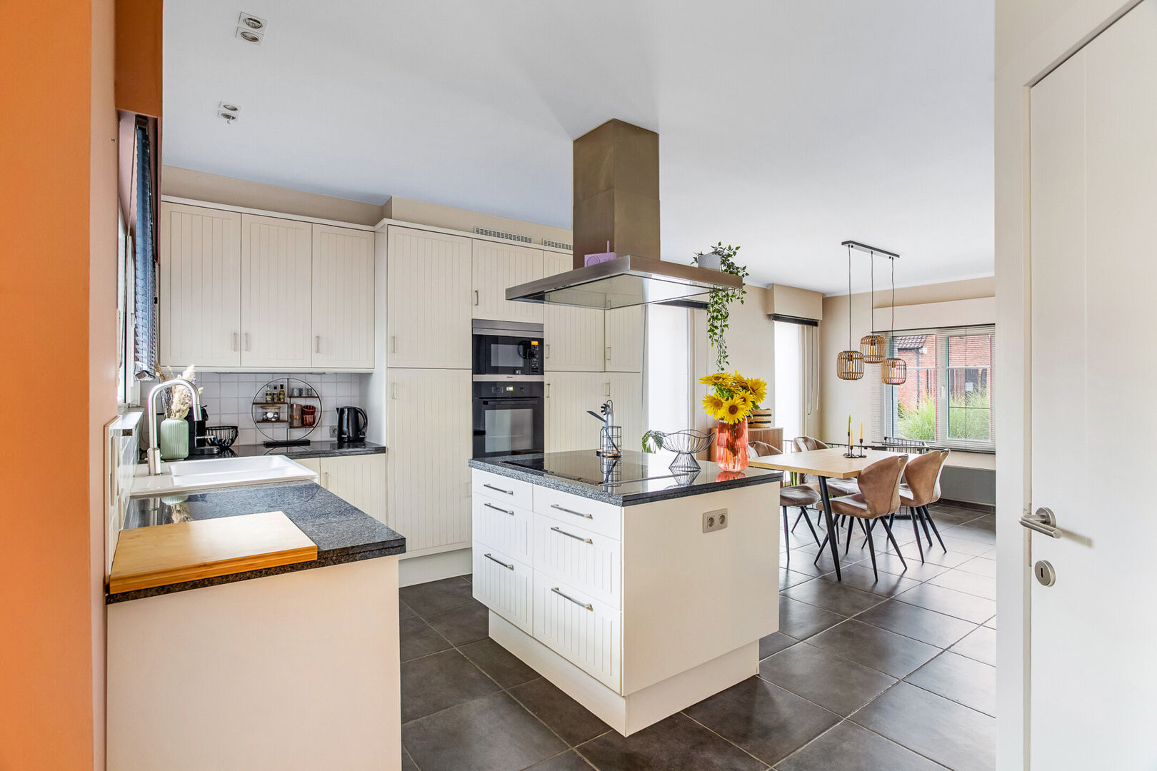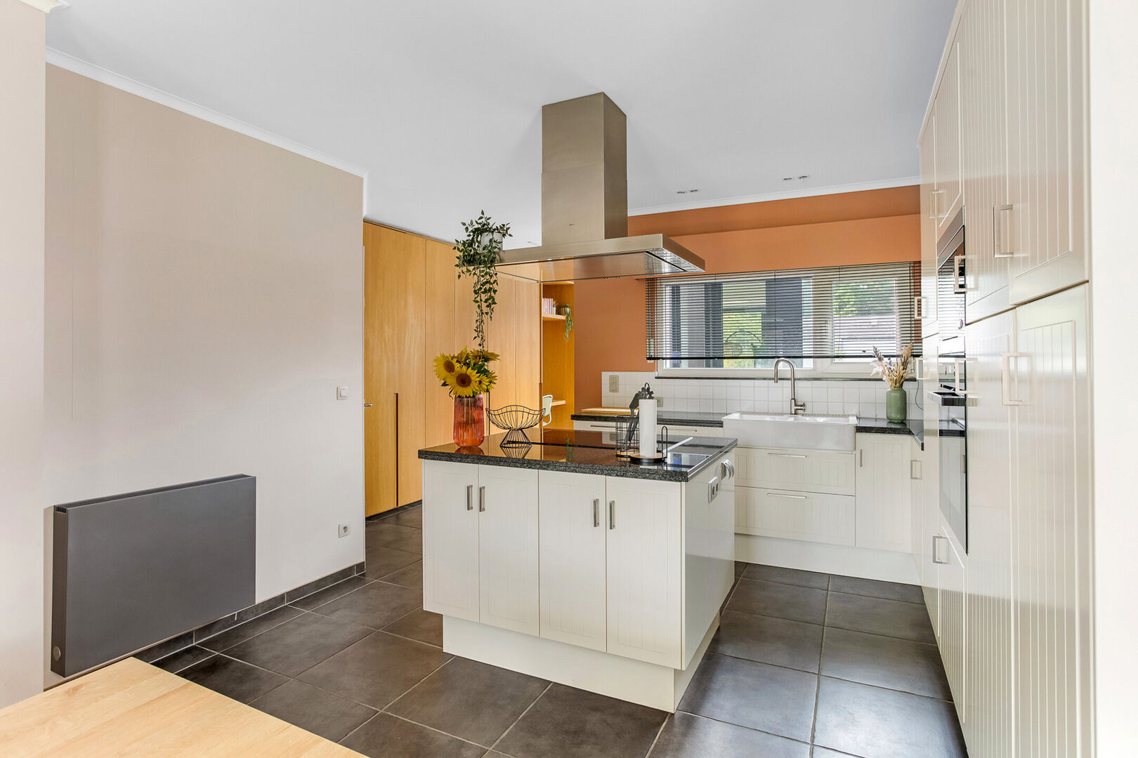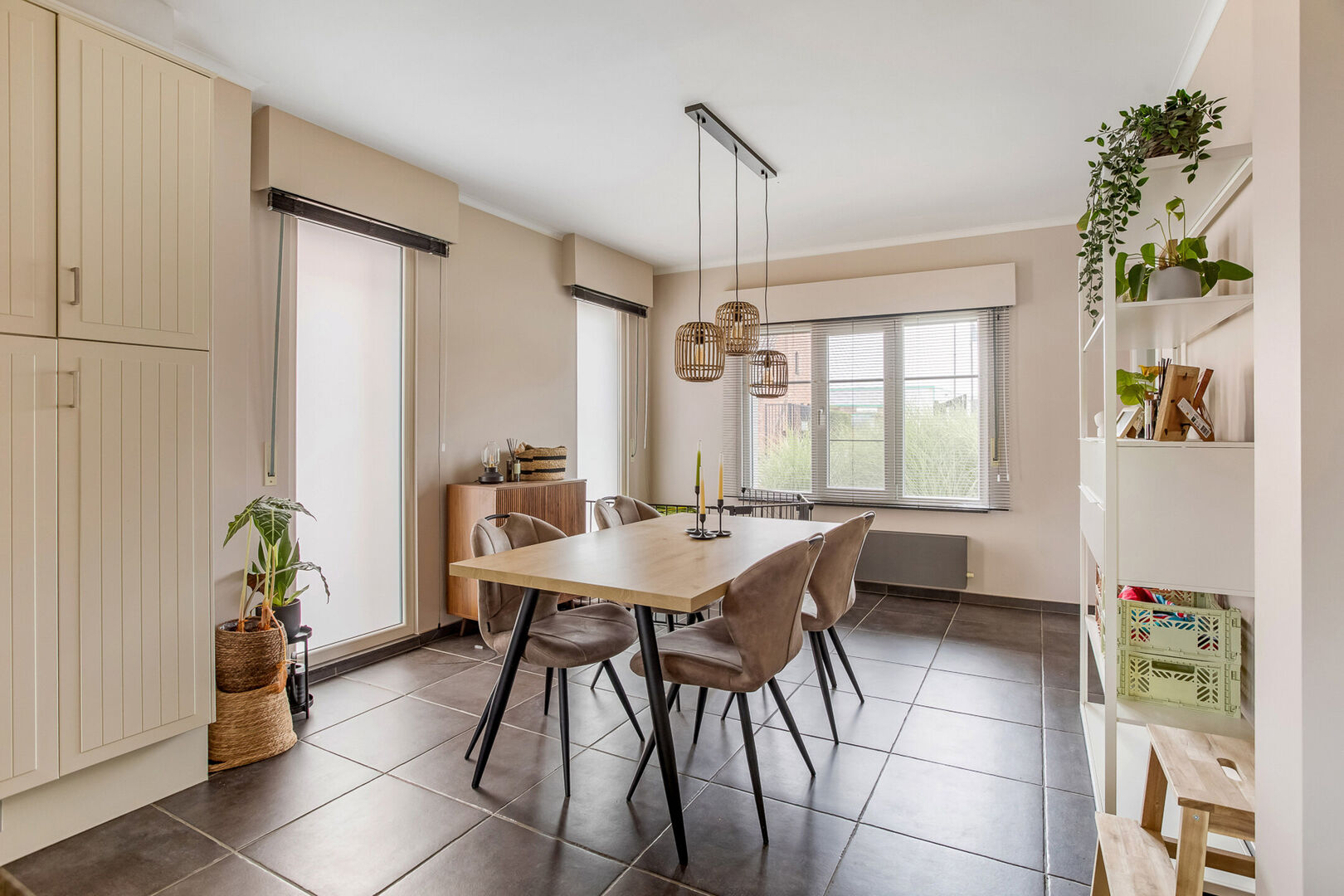 Je komt binnen via een inkomhal met gastentoilet, waarna je de leefruimte betreedt met een eethoek en een open keuken voorzien van alle comfort en inbouwkasten. Aansluitend bevindt zich de zithoek, met veel lichtinval en zicht op de tuin.