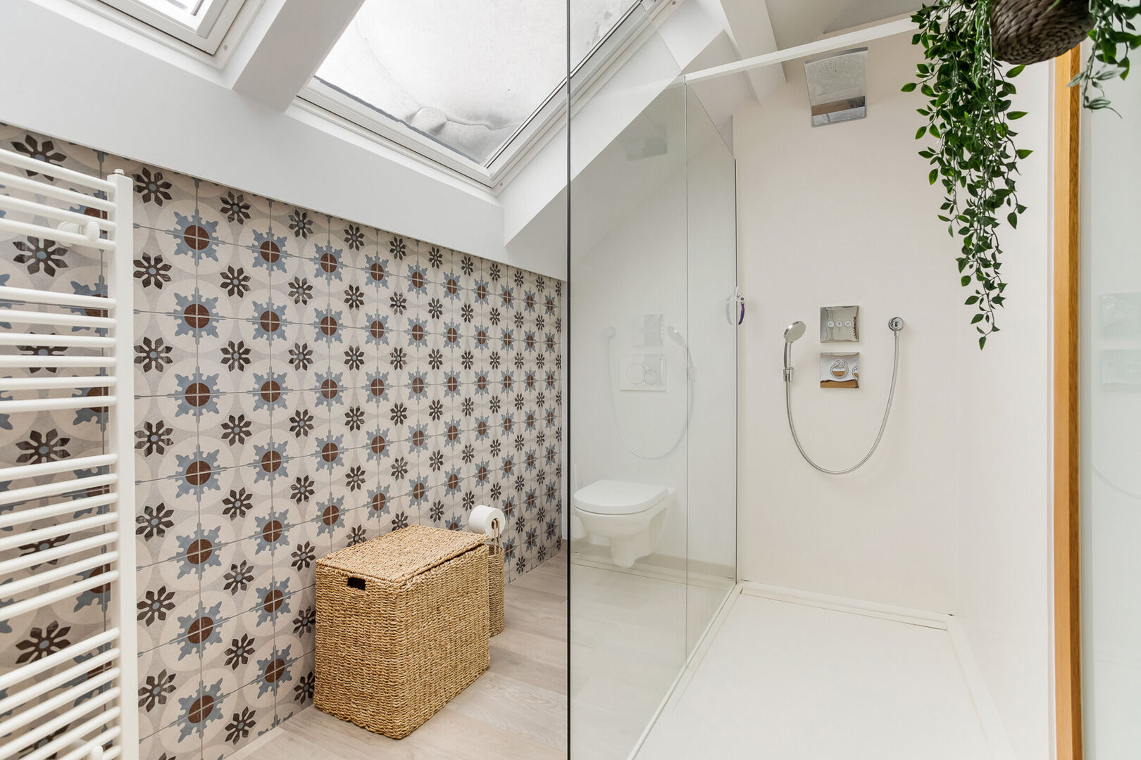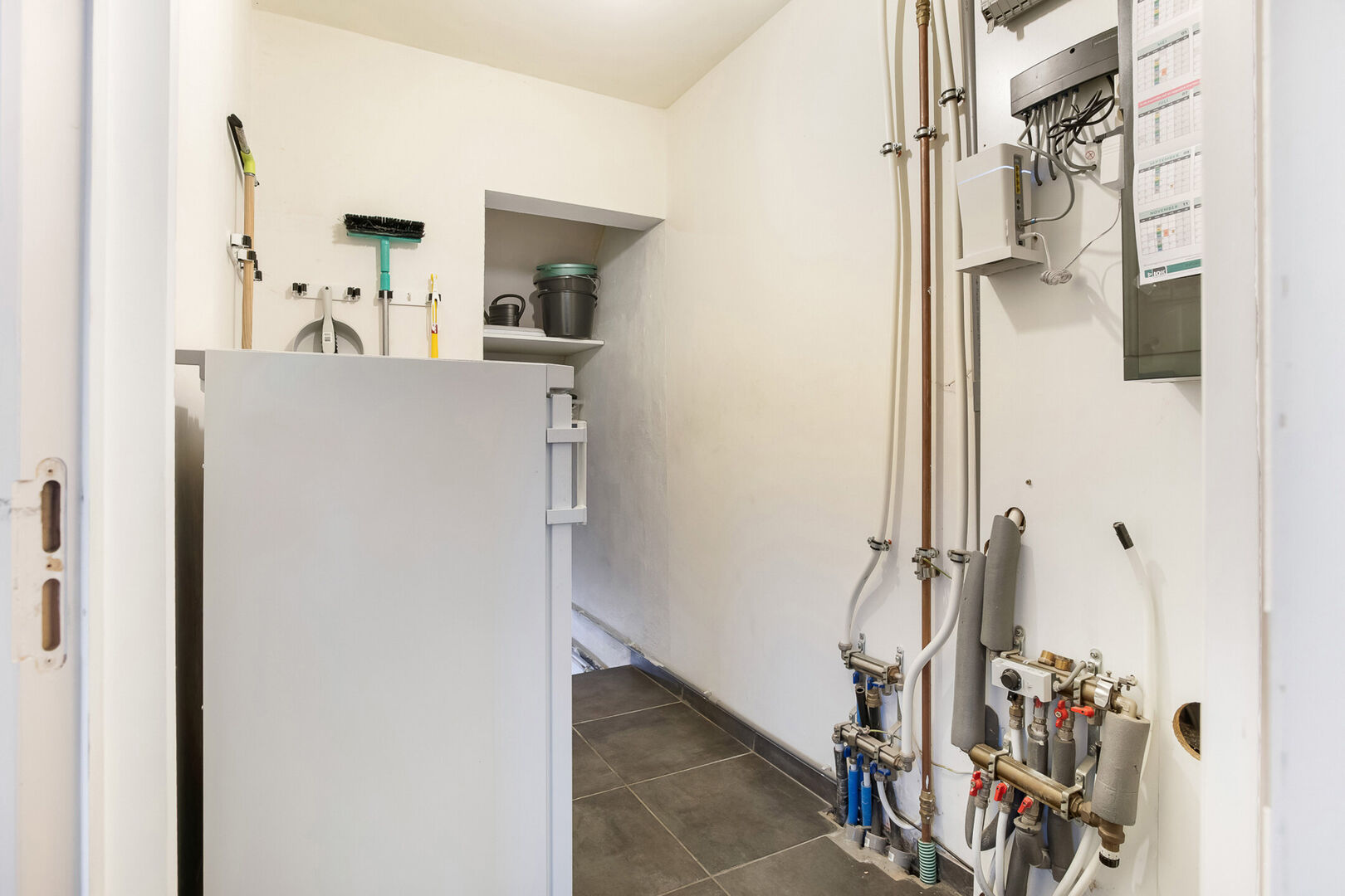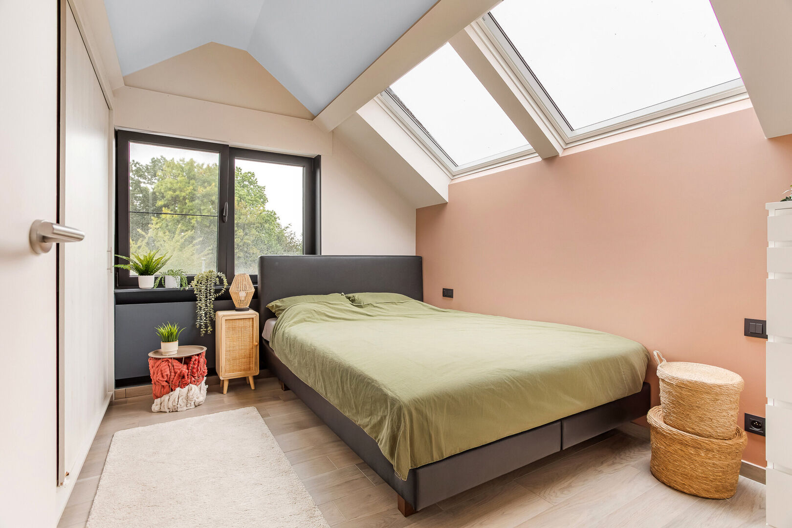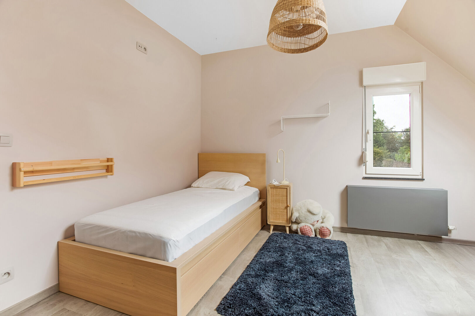 Op de eerste verdieping vind je drie slaapkamers en een moderne badkamer met inloopdouche, dubbele lavabo en handdoekverwarming. Via een vaste trap bereik je de opbergzolder, waar in 2023 een nieuwe condensatieketel werd geplaatst.