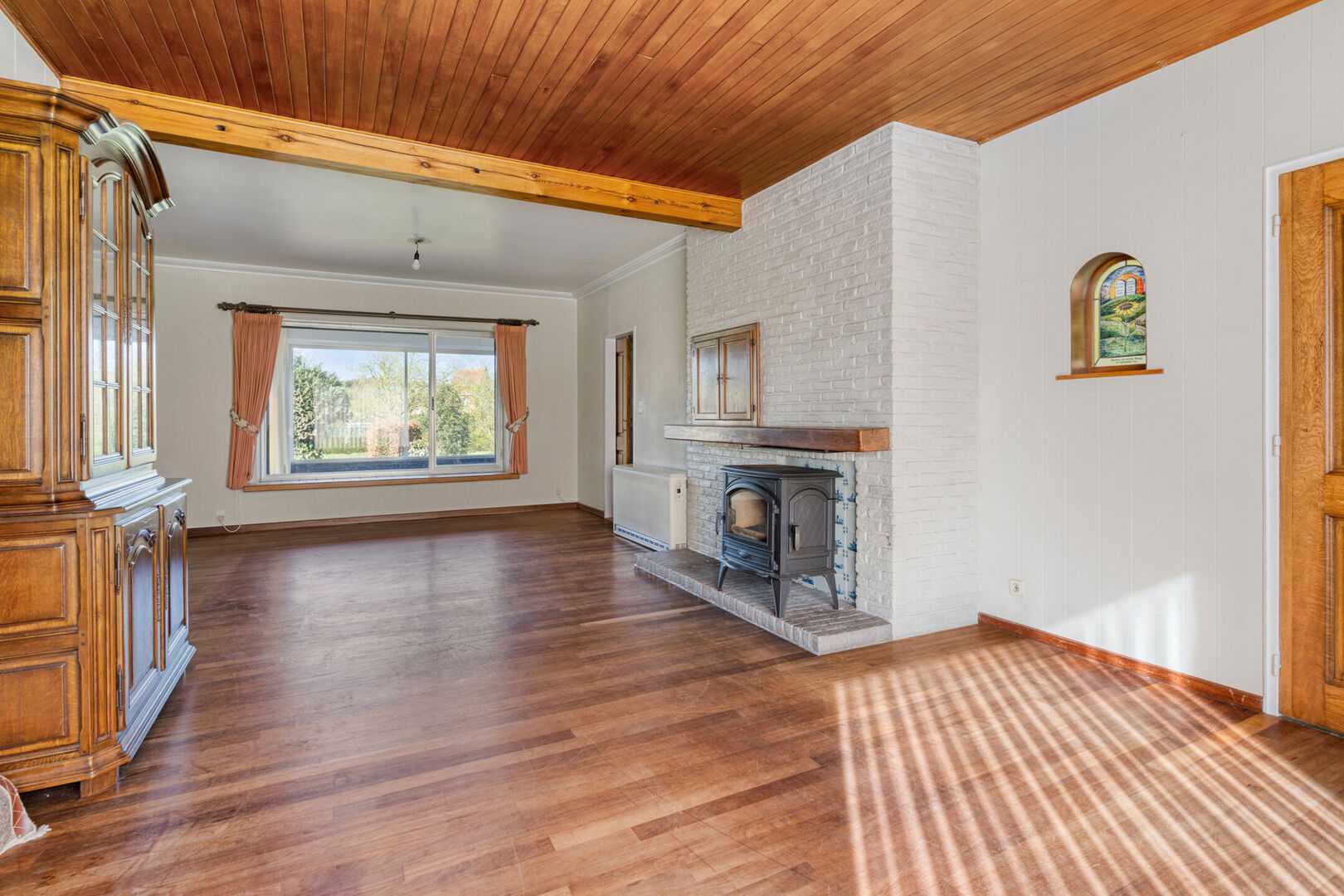 Binnenkomen doe je via een ruime hal die meteen een gevoel van openheid creëert. De leefruimte baadt in het daglicht en biedt een aangename plek om samen te komen, met voldoende plaats voor zowel een gezellige zithoek als een grote eettafel. De aanwezige kachel zorgt voor extra sfeer tijdens de koudere maanden.