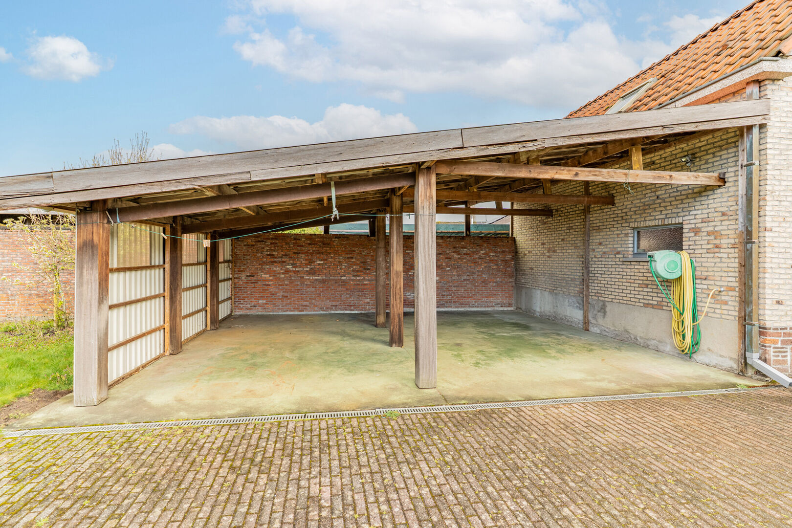 Buiten strekt zich een diepe, westgerichte tuin uit waar je in alle privacy kan genieten van zon en rust. De aanwezige carport en garage bieden niet alleen plaats voor wagens, maar ook voor opslag, een atelier of werkmateriaal — een absolute meerwaarde voor wie ruimte nodig heeft.