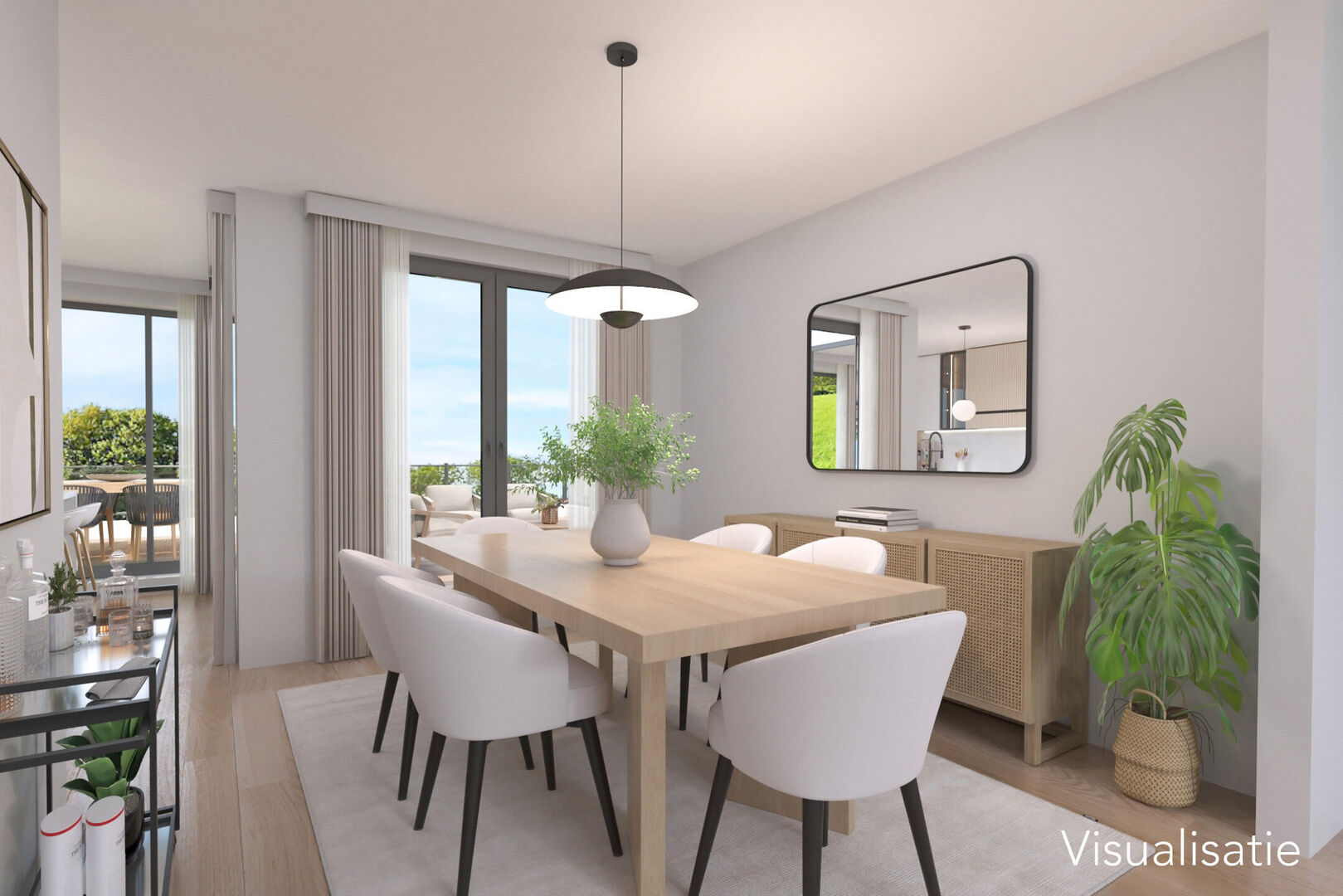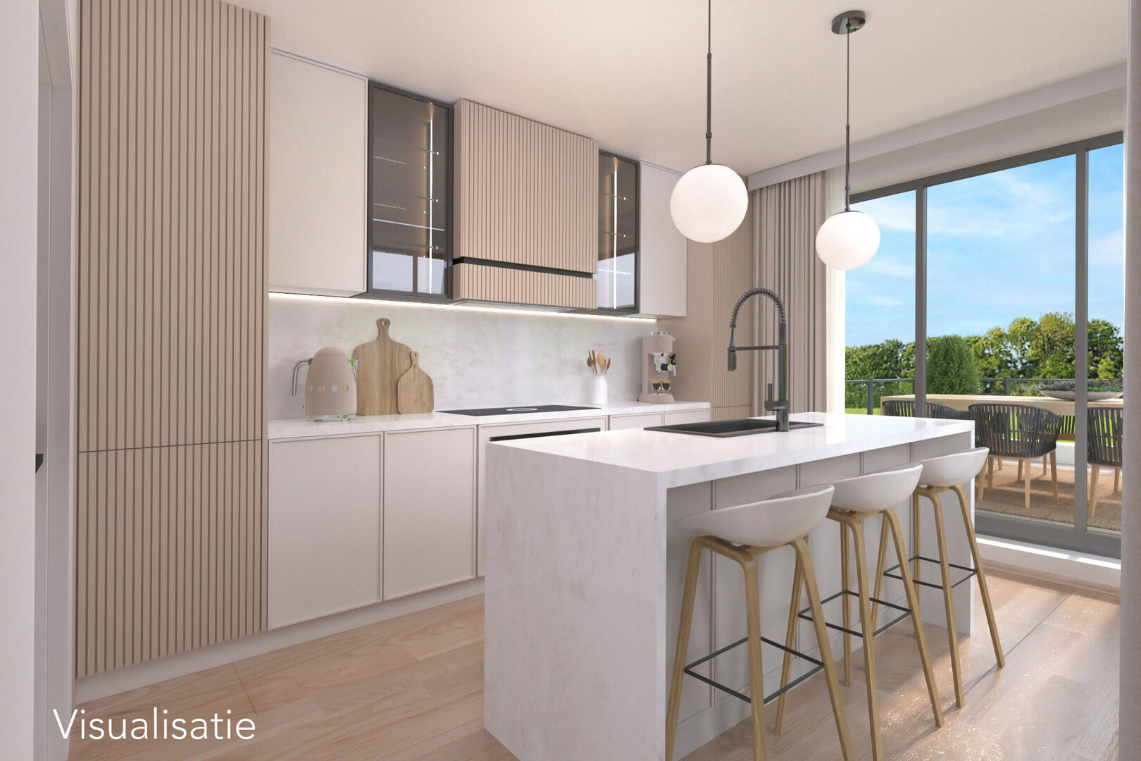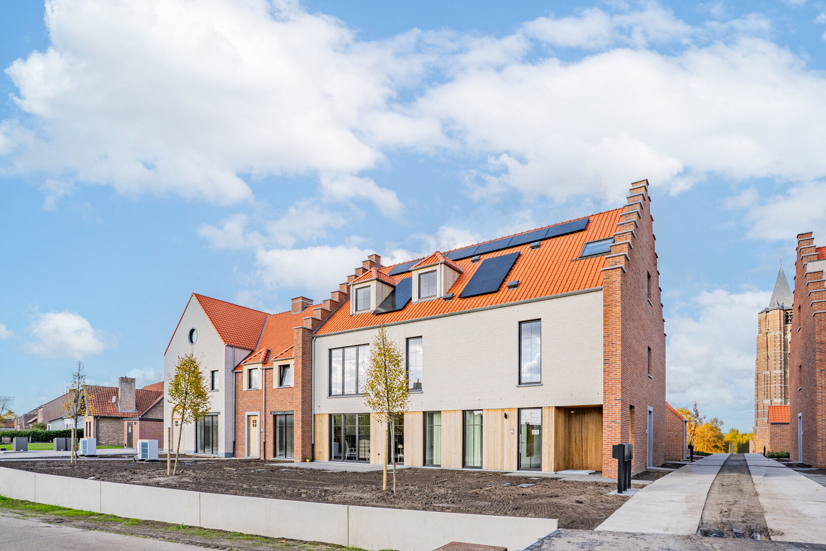 Elke woning is ontworpen met oog voor ruimte en functionaliteit. Op het gelijkvloers vindt u een inkomhal met gastentoilet, een ruime en lichtrijke leefruimte met directe toegang tot de tuin, en een volledig uitgeruste keuken. Aansluitend bevindt zich een praktische wasplaats met doorgang naar de ondergrondse parkeergarage en private berging. In de tuin is bovendien een handige tuinberging aanwezig, bereikbaar via een achterliggende servitudeweg.
