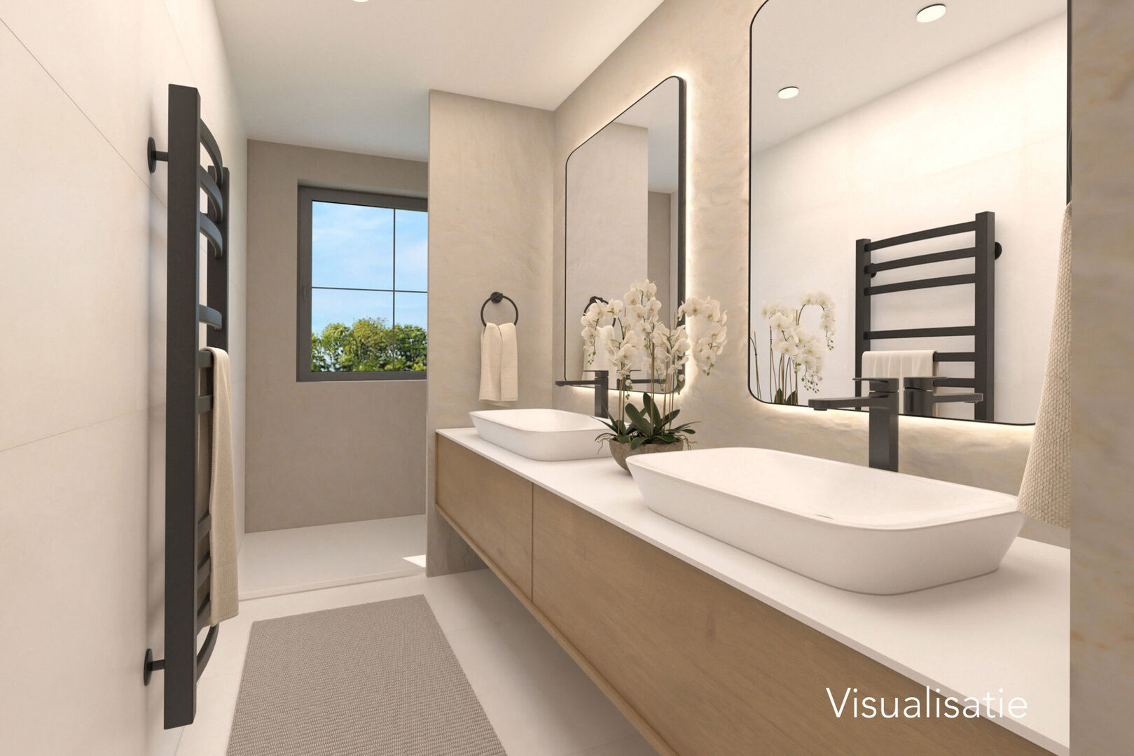 Op de eerste verdieping bevinden zich drie volwaardige slaapkamers en een moderne badkamer met toilet. De zolderverdieping biedt extra ruimte en kan, mits meerprijs, naar wens verder afgewerkt worden.