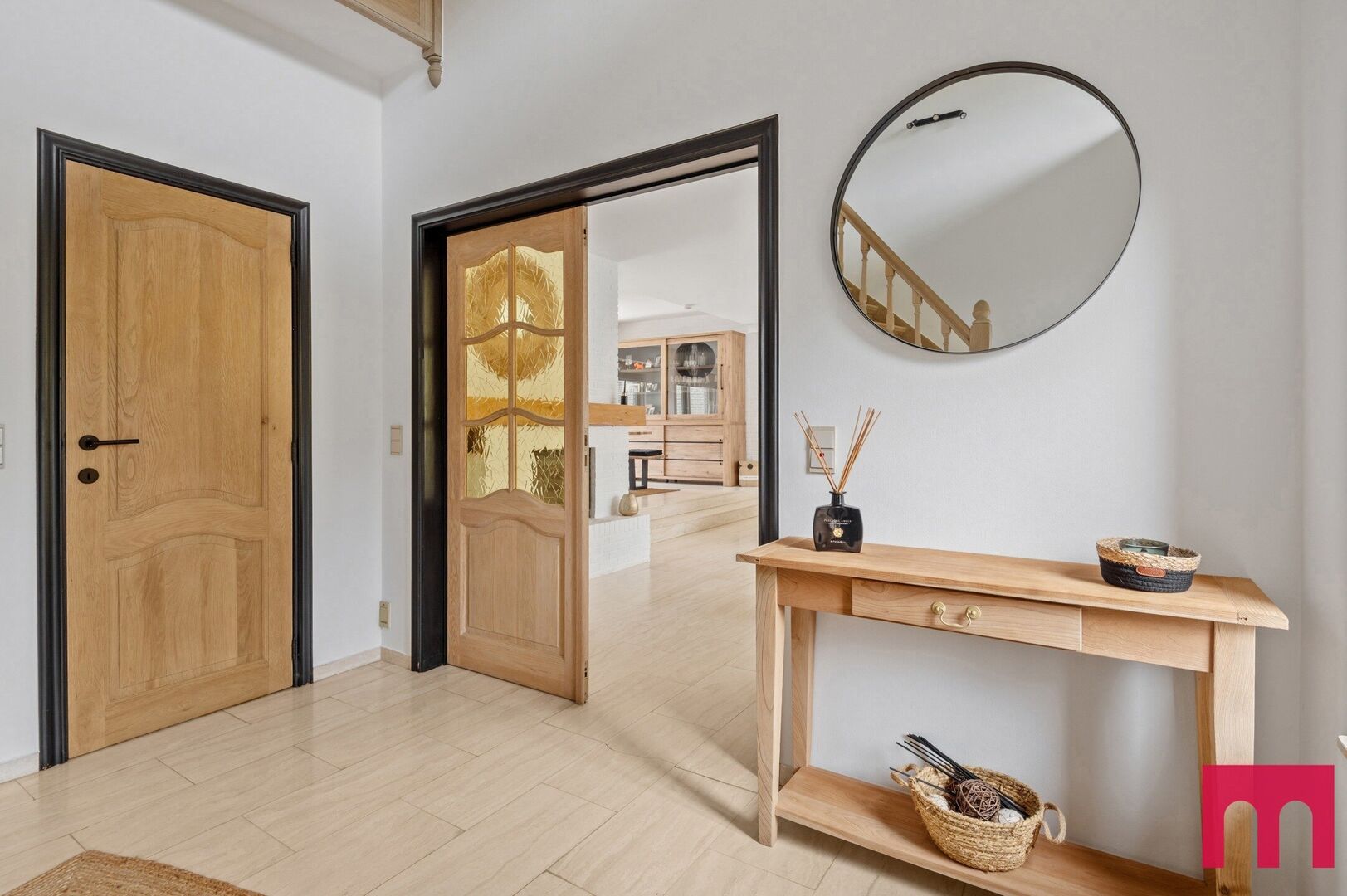 Binnenkomen doe je in een royale inkomhal met overvloedige lichtinval en gastentoilet. Een statige binnenkomer die meteen de toon zet.