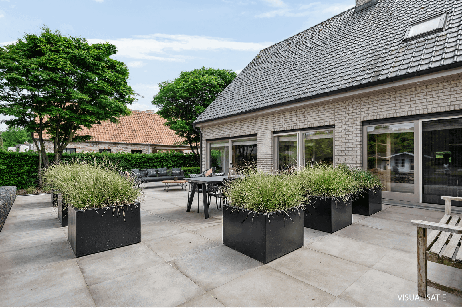 Een ruim terras aansluitend aan keuken en woonkamer